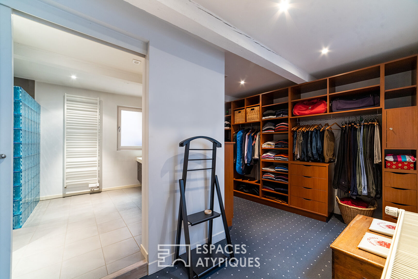 Sa décoration soignée, mêlant la brique, les tomettes, le bois du très bel escalier ou les moulures de sa cheminée, s’harmonise parfaitement avec les matériaux contemporains.
