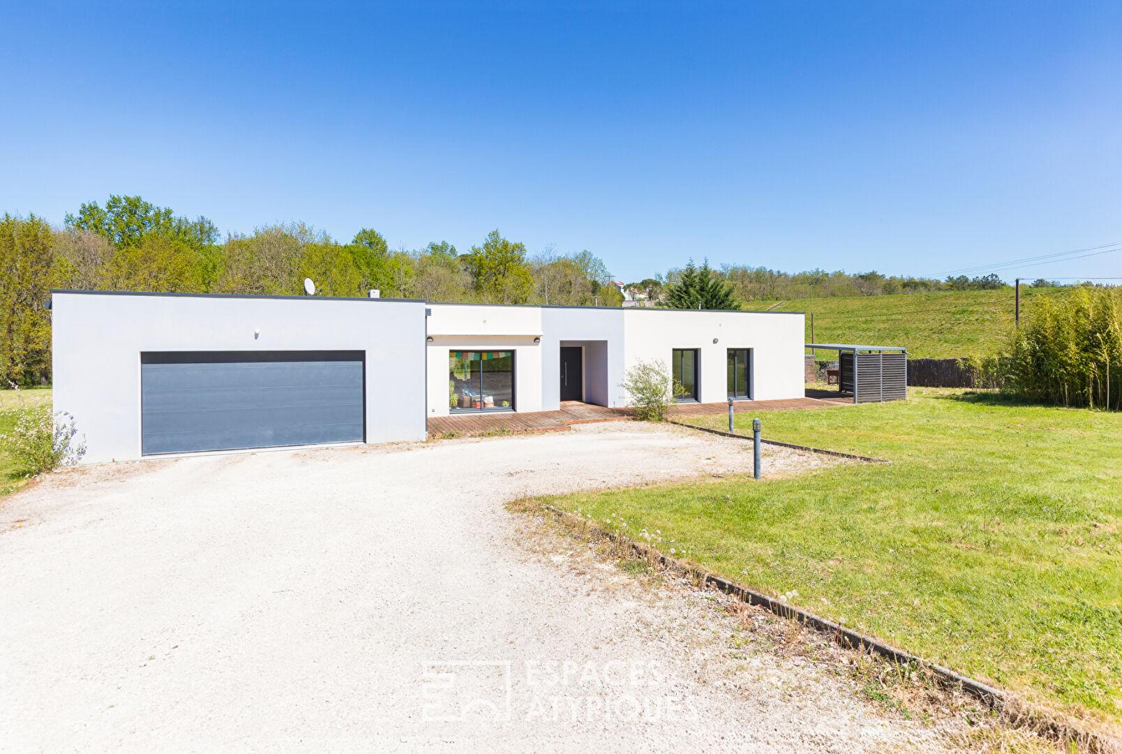 À seulement 10 minutes du centre de Montauban, au coeur du quartier très recherché de St Martial, cette villa d’architecte de plain-pied d’environ 150m² s’inscrit dans un environnement calme et verdoyant.