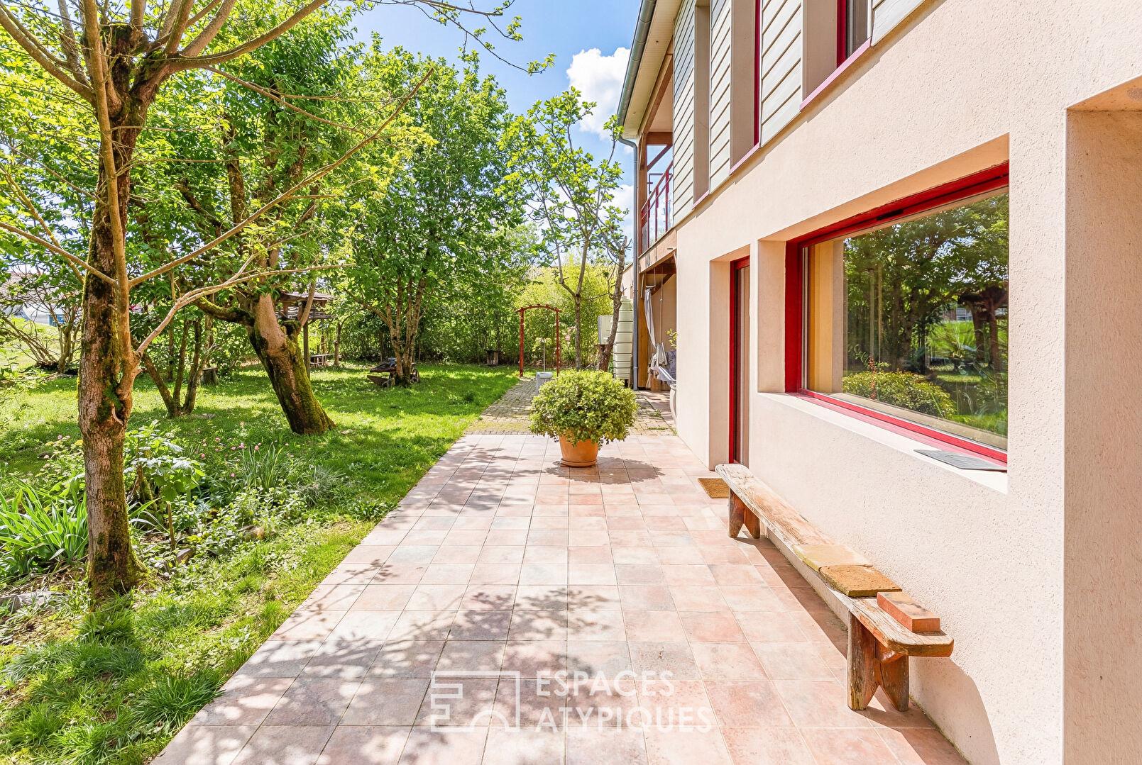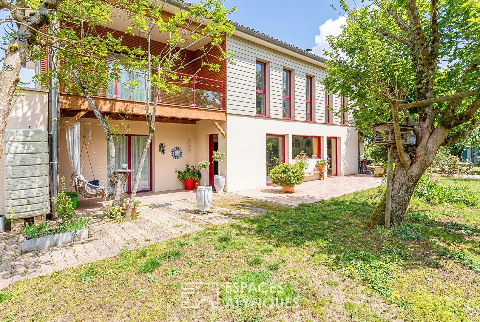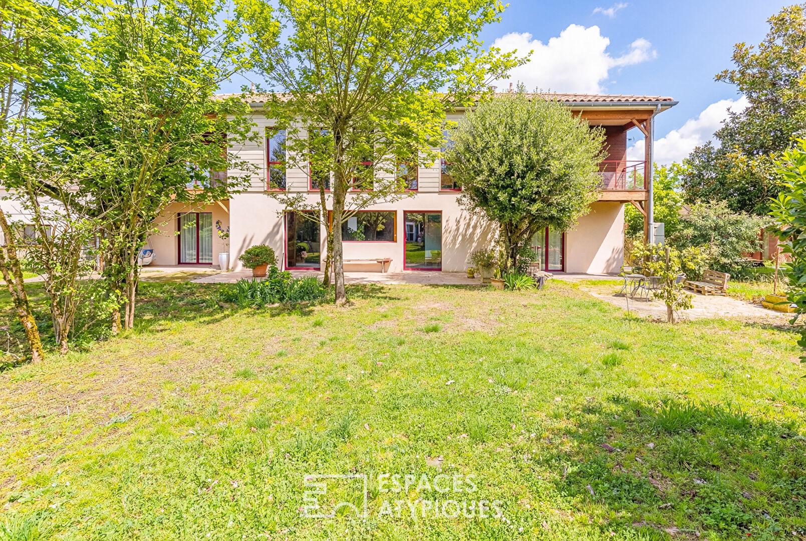 Blotti dans la charmante commune de Nègrepelisse à seulement une quinzaine de minutes de Montauban ce lieu de vie singulier de 231m2 marie élégamment histoire régionale et design contemporain atypique.