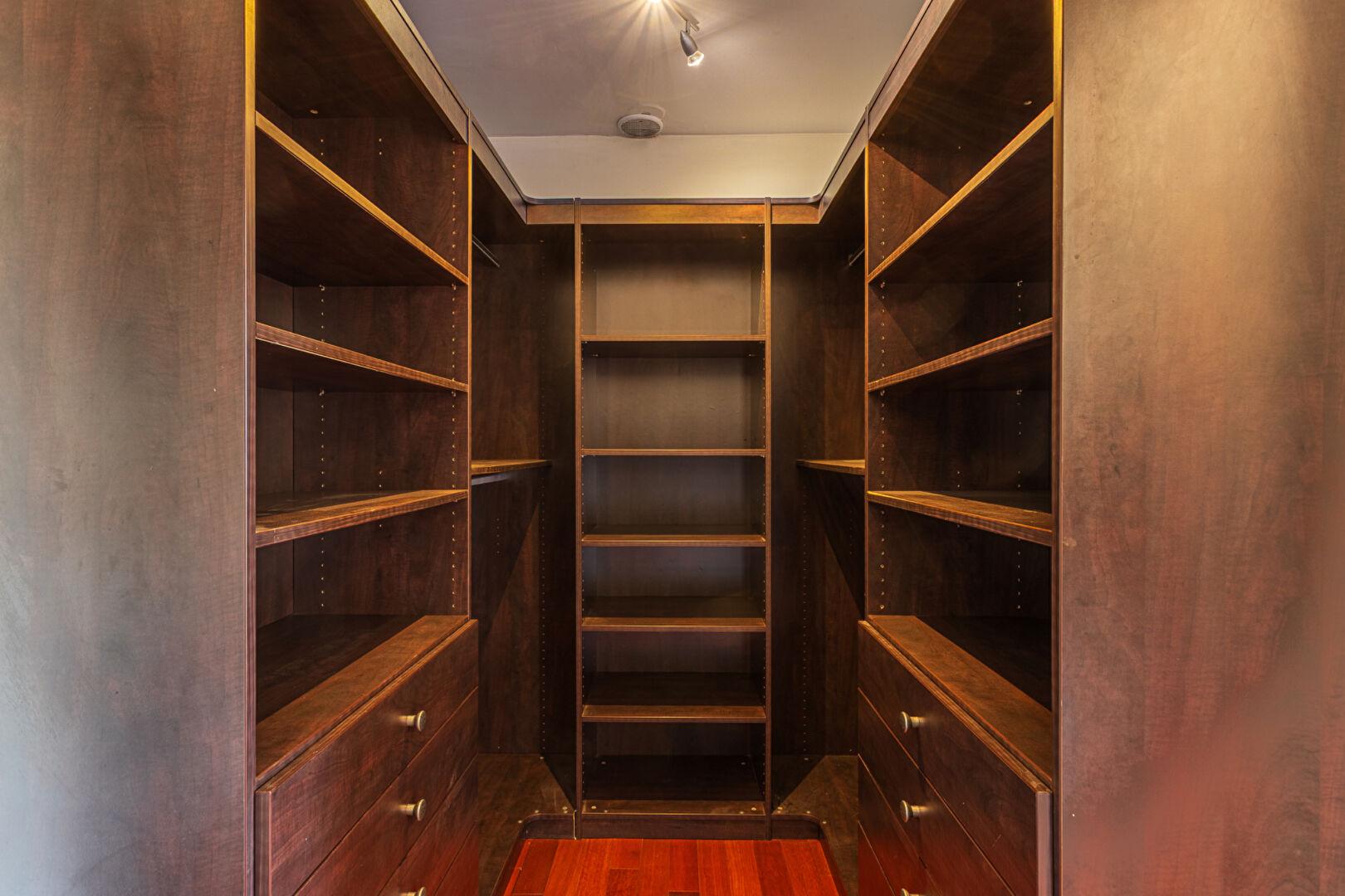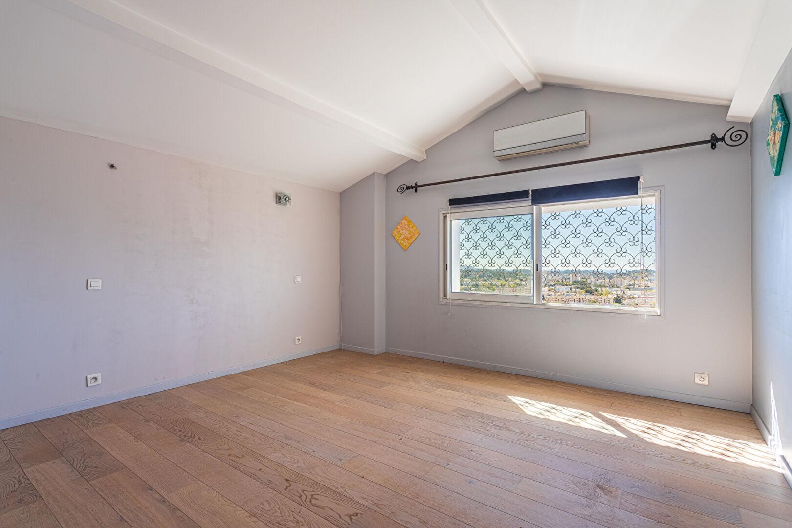 Les sept pièces, dont une suite parentale et plusieurs chambres généreuses, conservent une atmosphère épurée, avec des dressings sur-mesure et deux salles d’eau.