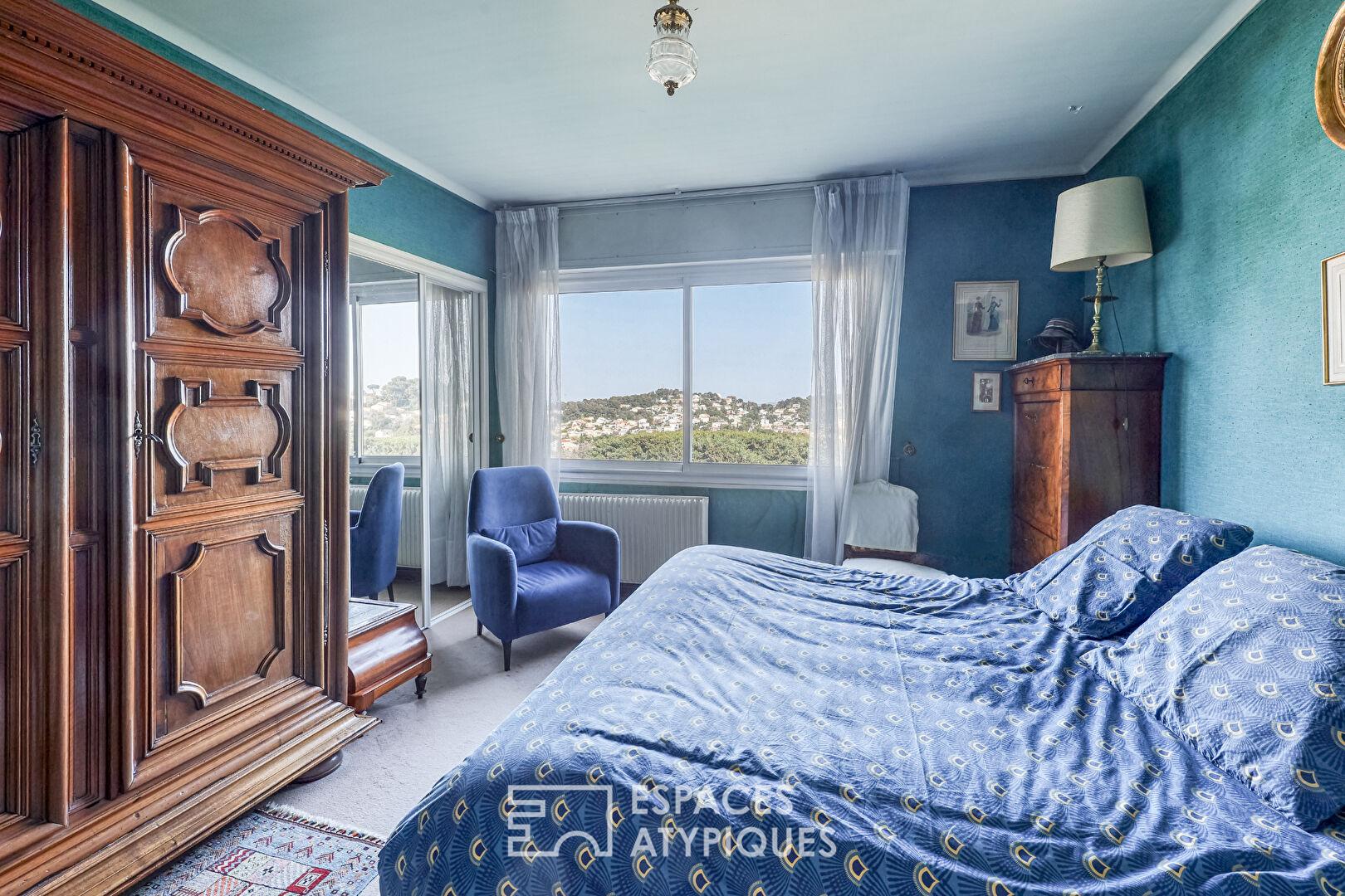 À Six-Fours-les-Plages, dans le quartier résidentiel de la Collégiale, cette maison d’architecte des années 1970 séduit par son architecture singulière inspirée des villas californiennes.