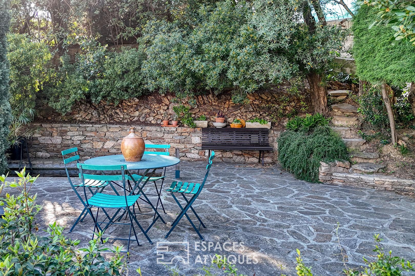 À l’extérieur, la propriété déploie plusieurs terrasses dans un jardin aux essences méditerranéennes. Le terrain, offre des perspectives dégagées sur le paysage environnant.