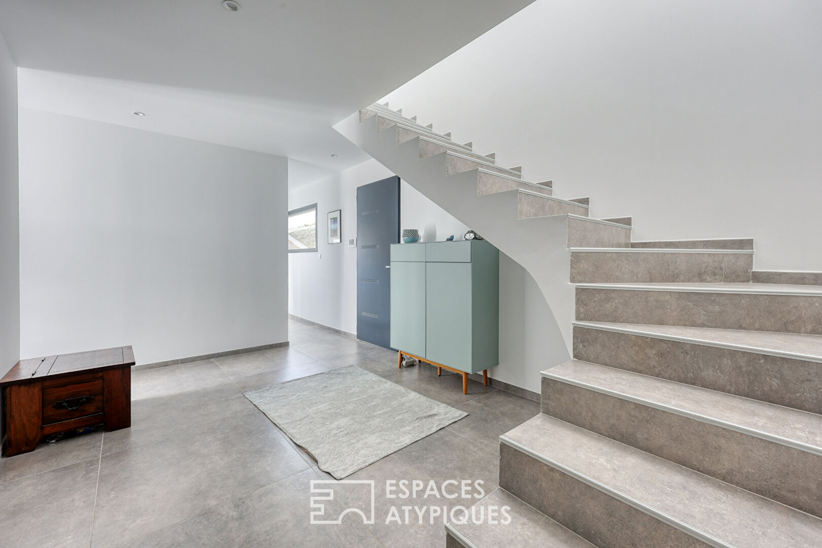 Le Garage : Carrelé et isolé, il intègre une buanderie, un chauffe-eau thermodynamique et bénéficie de lumière naturelle (fenêtres et porte-fenêtres) pour valider un véritable espace polyvalent.