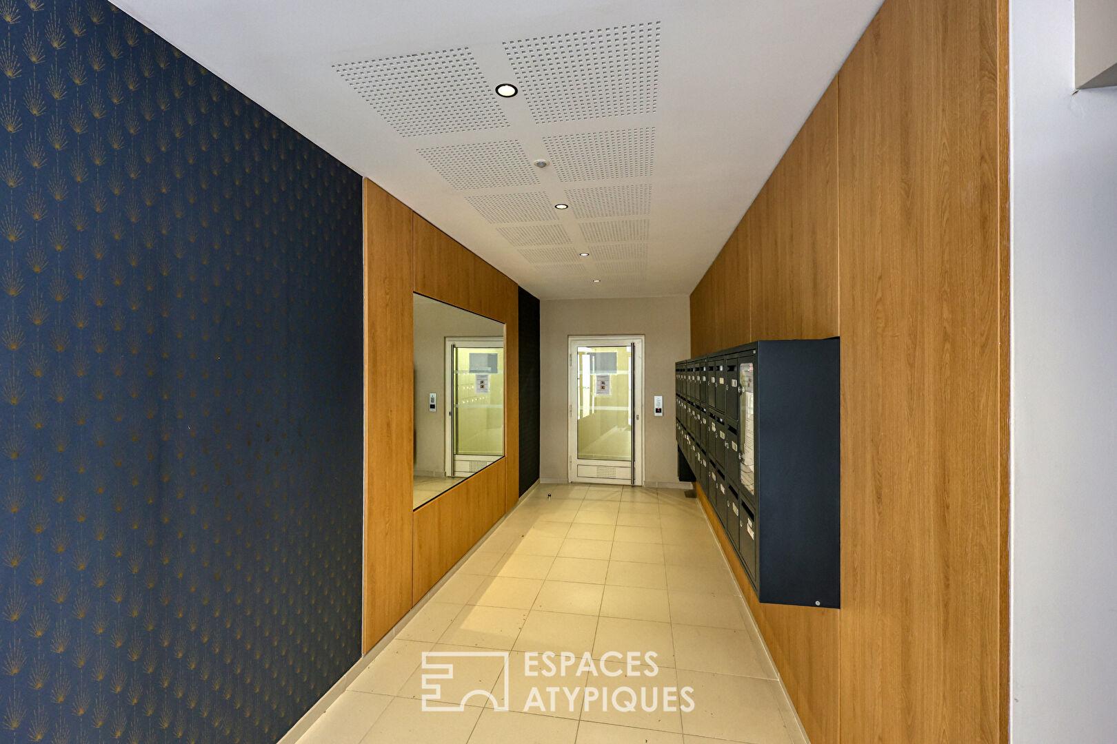 Niché au dernier étage avec ascenseur, cet appartement de 48 m² a été conçu comme un véritable cocon de lumière.