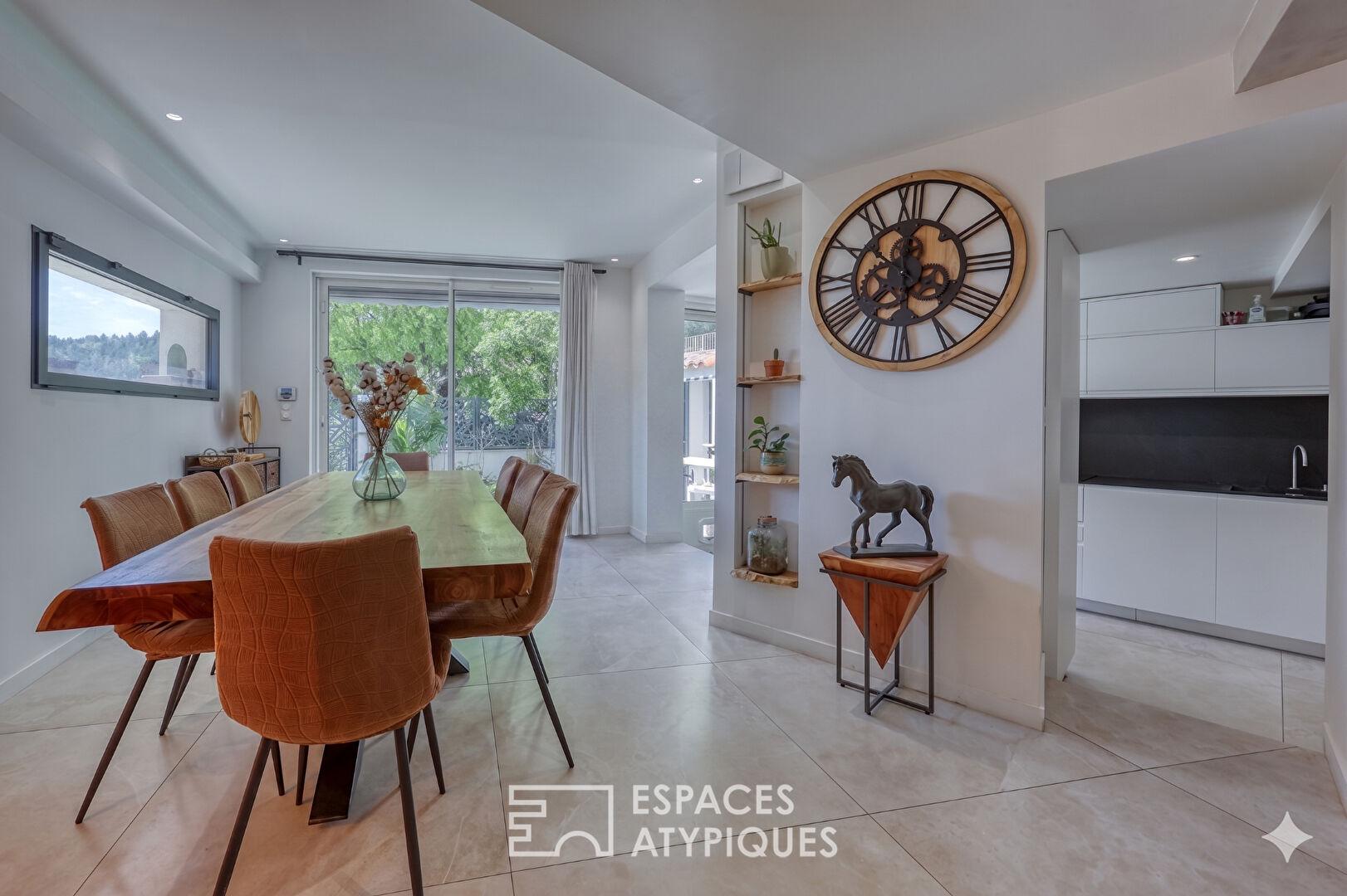 Située dans le paisible hameau des Pomets, à l’orée de Toulon, cette maison du XVIIIe siècle a bénéficié d’une rénovation intégrale. Elle déploie aujourd’hui 100 m² de surface habitable, où chaque niveau a été pensé pour optimiser l’espace et la lumière.
