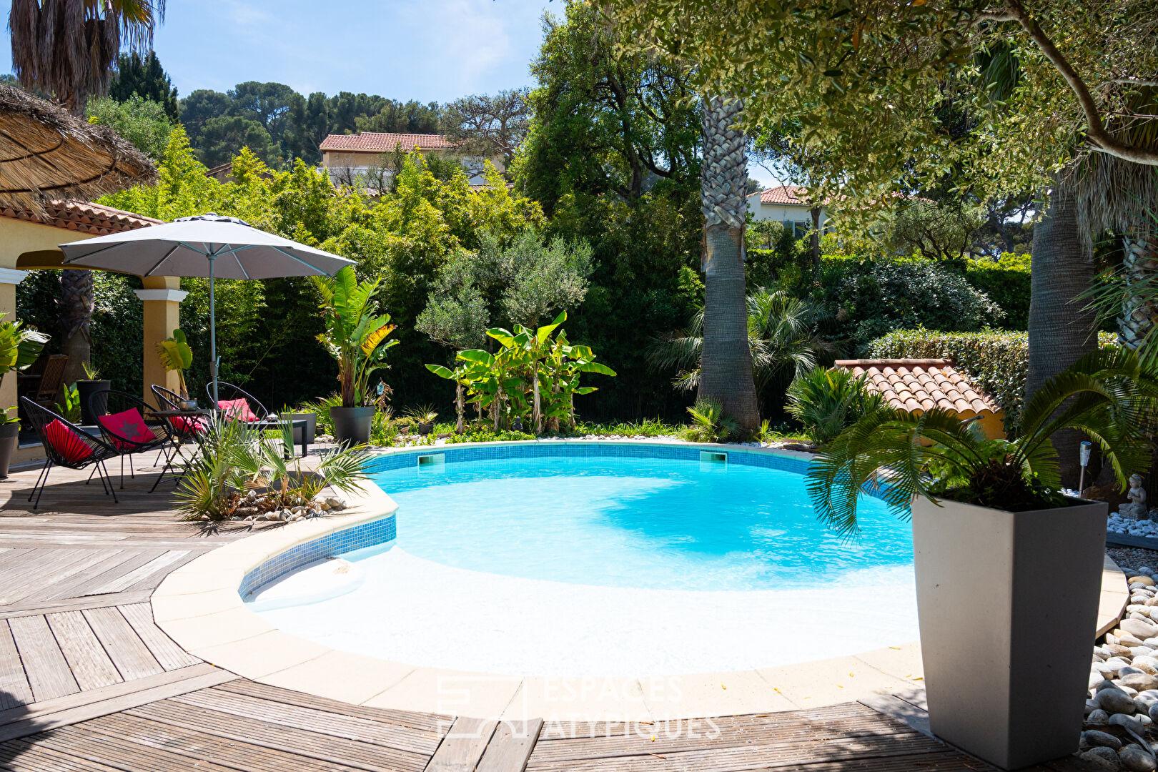 Villa au style provençal parfaitement entretenue d’une surface habitable de 170 m2, idéalement située à proximité de la plage de la Garonne au Pradet dans le Var.