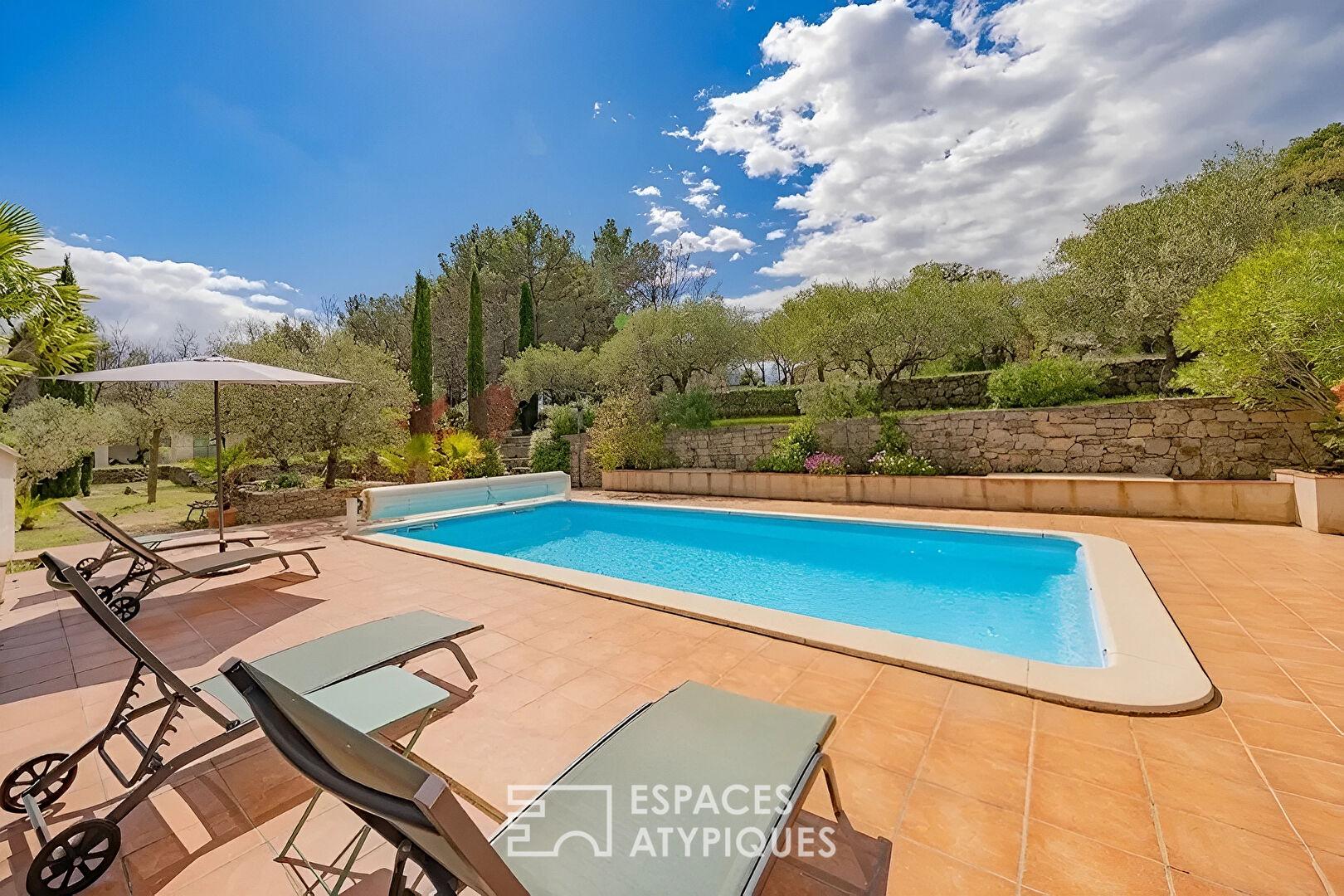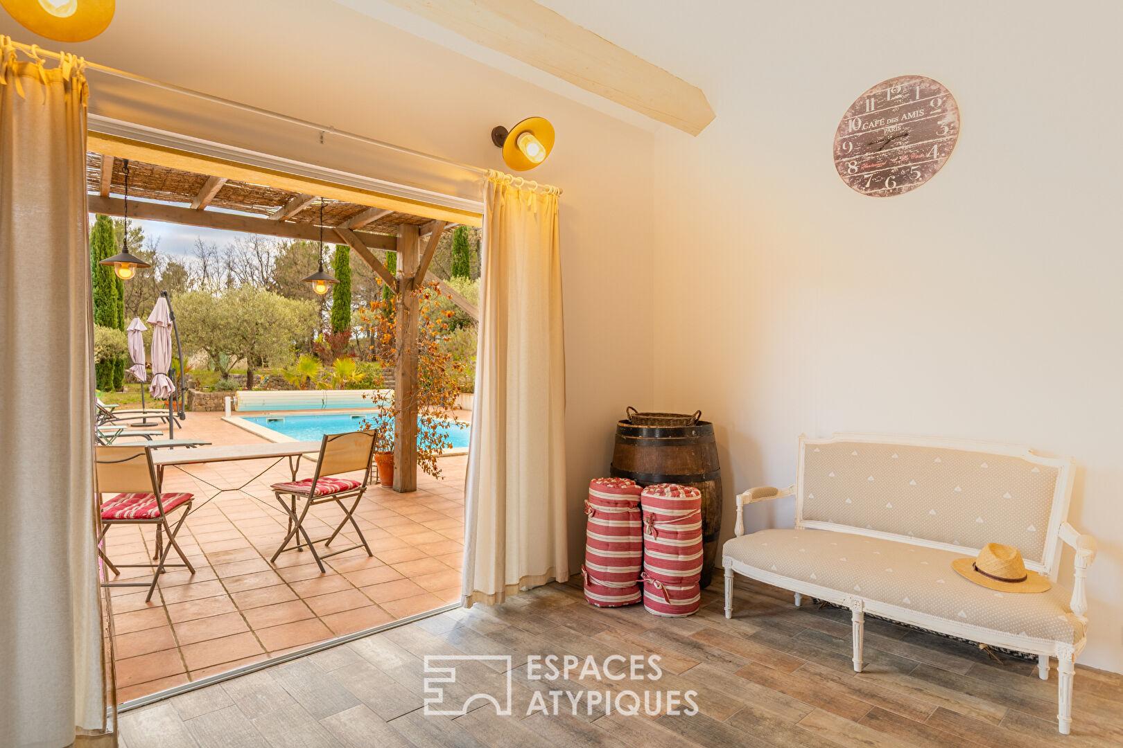 La piscine et son pool house de 25 m² invitent à des instants de détente dans un cadre paisible et authentique.
