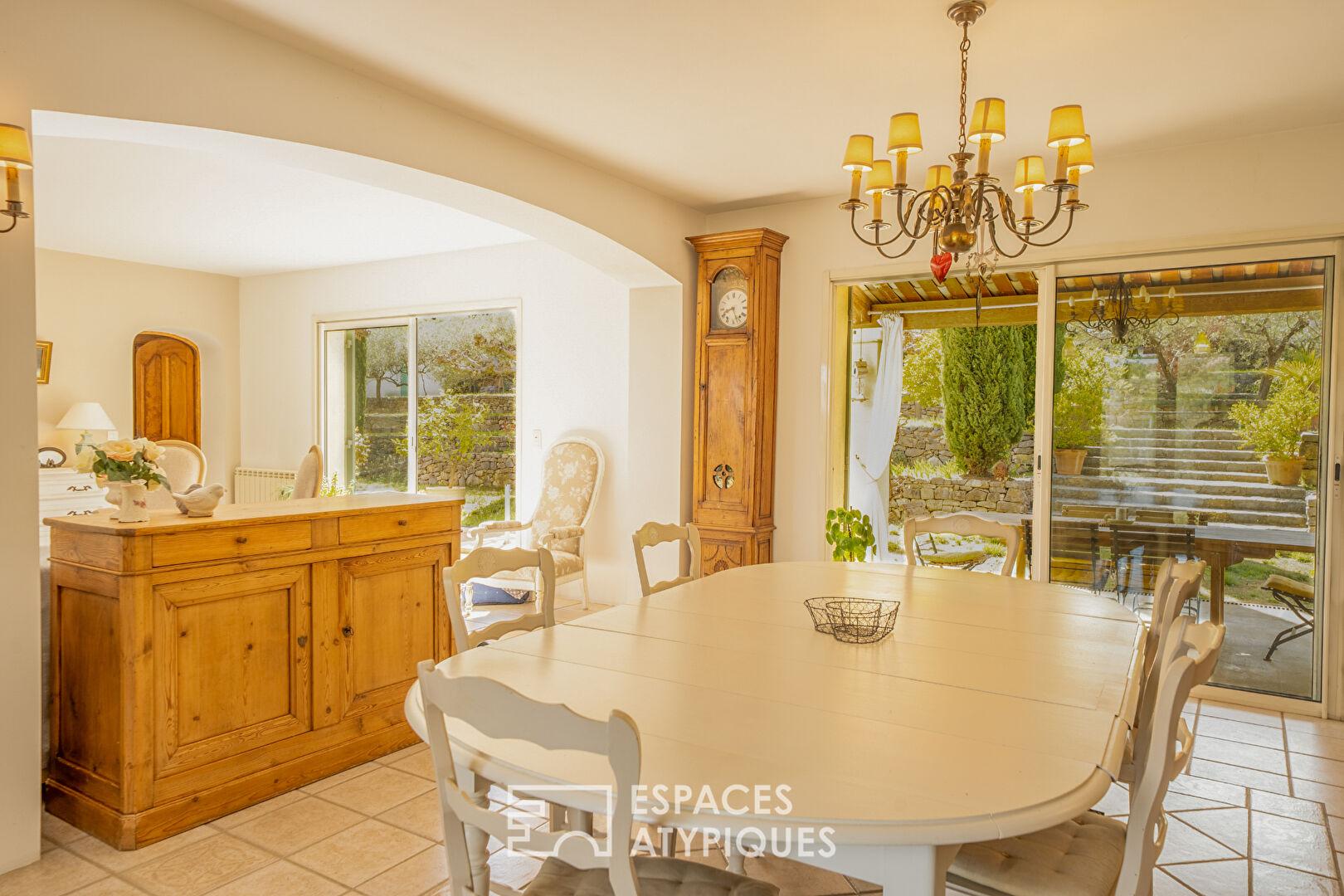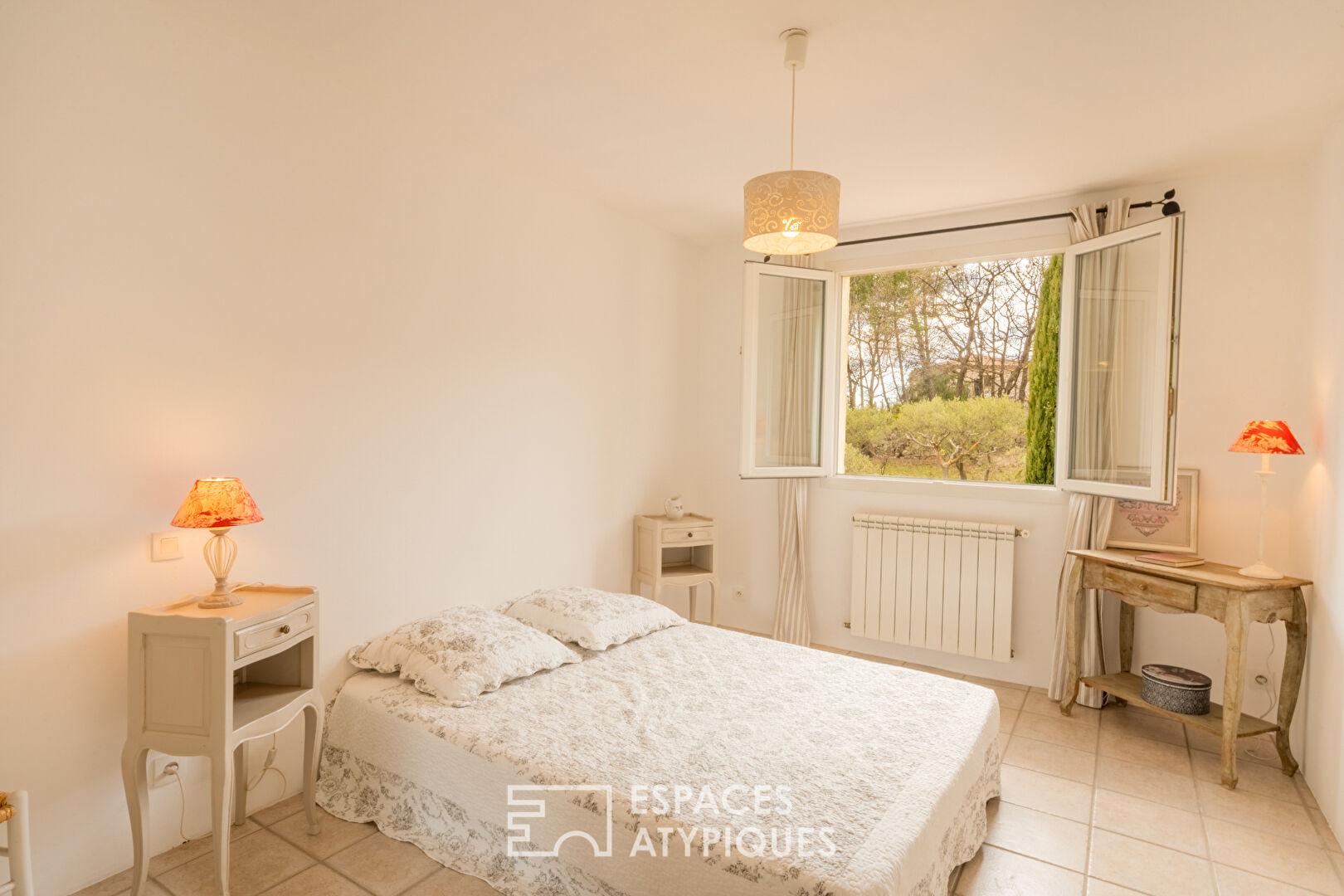Au coeur d’un environnement naturel préservé, cette propriété de caractère s’inscrit dans l’histoire d’une ancienne oliveraie du XIXe siècle, dont subsiste un bastidon d’origine entièrement réhabilité, autour duquel s’est développée la maison actuelle.
