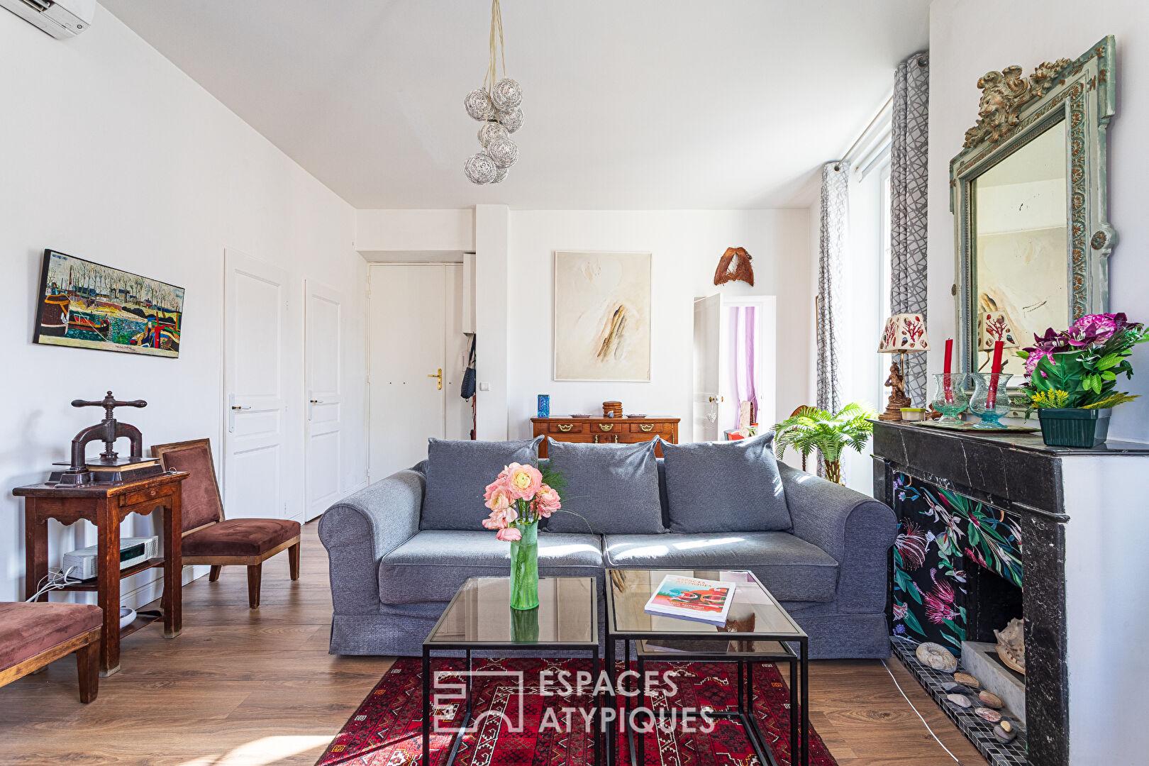 Niché au troisième étage d’un bel immeuble bourgeois avec ascenseur, cet appartement de 60m² (environ) est une véritable ode à la lumière et à l’art de vivre urbain. Fruit d’une rénovation orchestrée par une décoratrice d’intérieur, ce lieu a su préserver son âme historique tout en y insufflant une modernité discrète et raffinée.