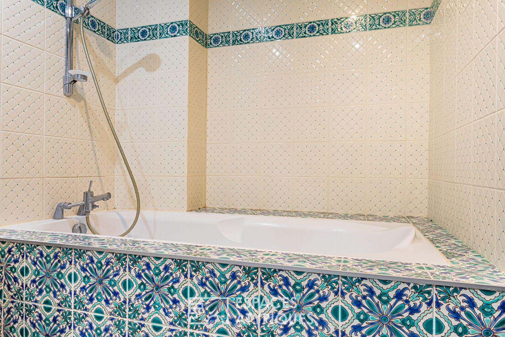 Côté nuit, la chambre de près de 14 m² s’impose comme un cocon de sérénité. Orientée à l’ouest, elle profite de la douceur des lumières de fin de journée. La salle de bain, parée de faïences colorées, apporte une vibration chromatique tonique, tandis que les aspects fonctionnels , buanderie et rangements s’effacent derrière une porte.