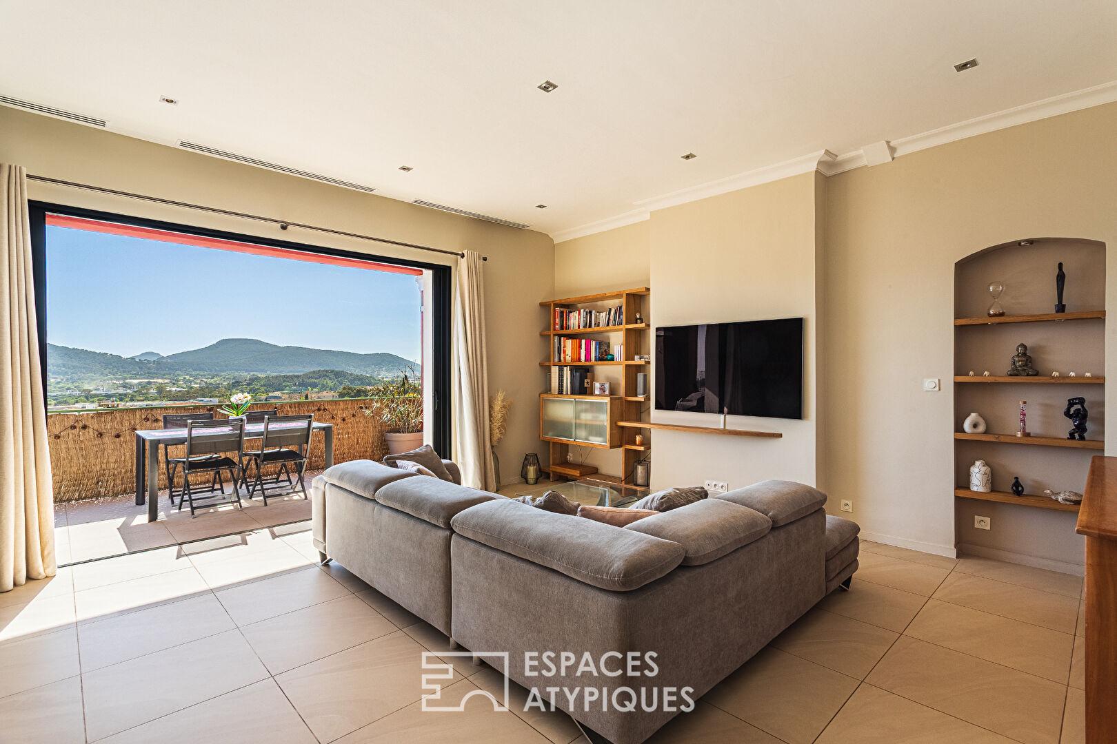 Un bien rare, à l’esprit atypique, entre ciel, lumière et panorama.