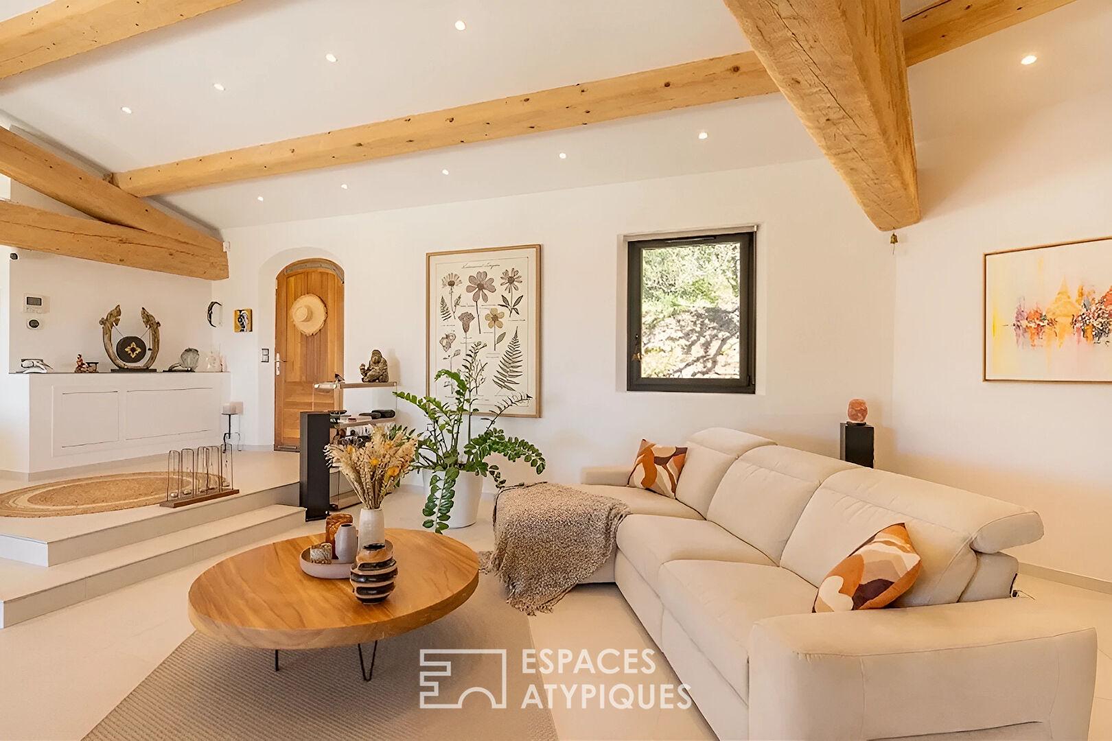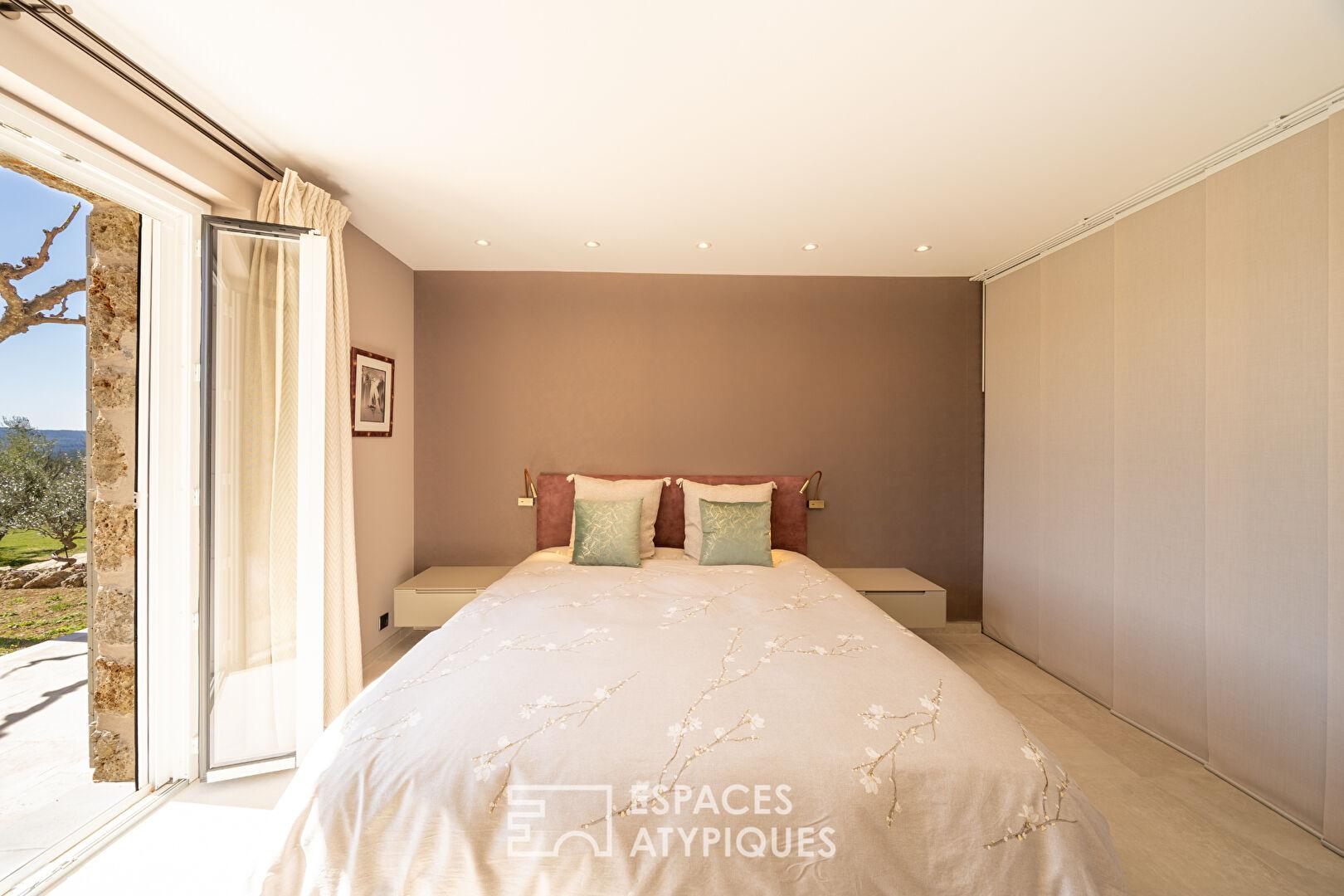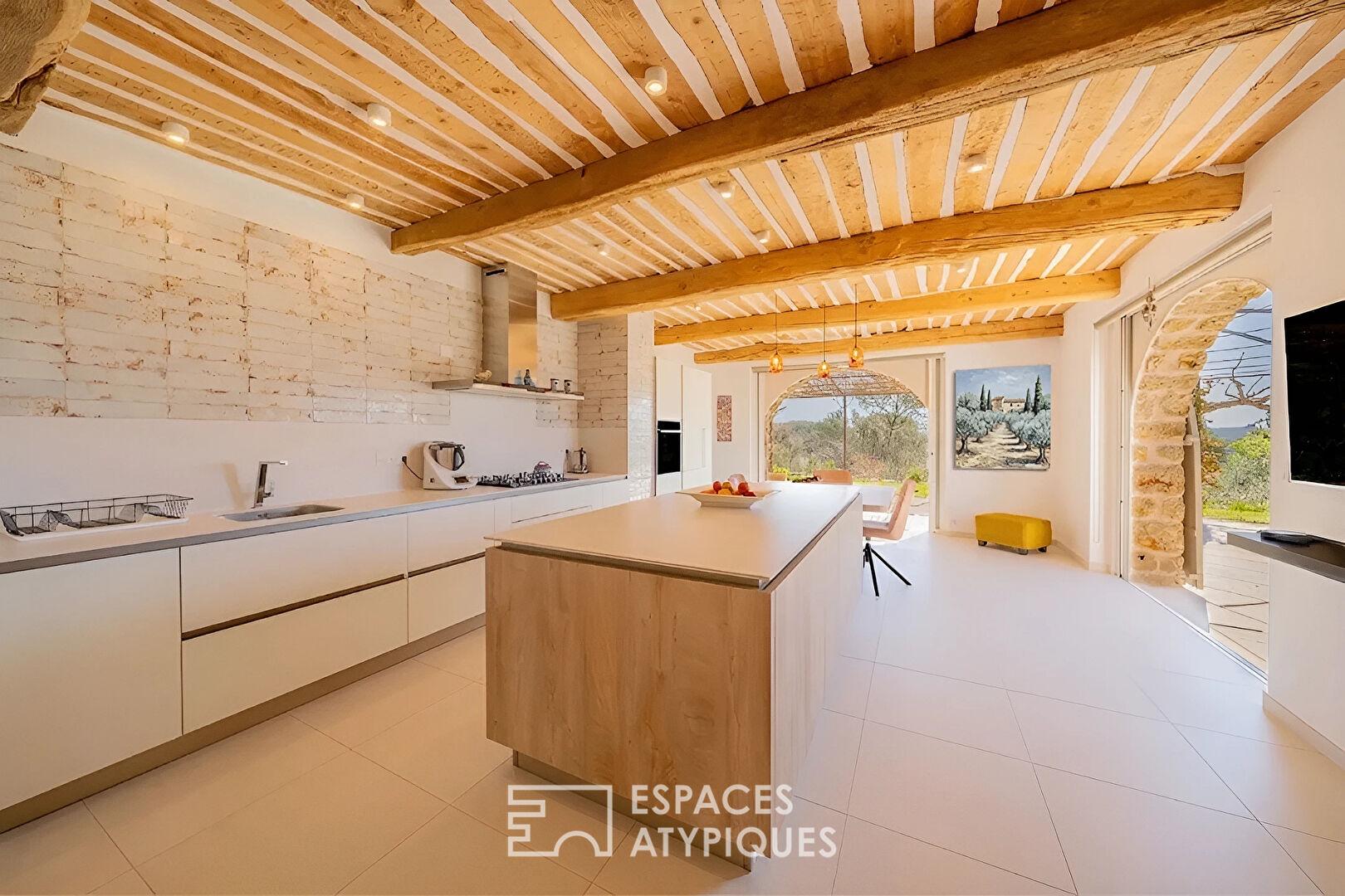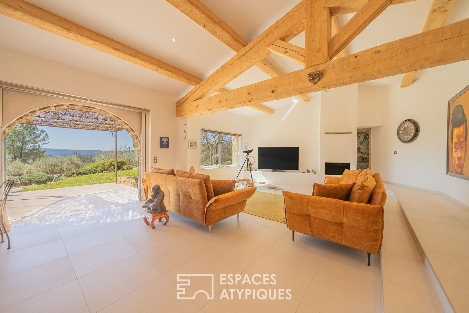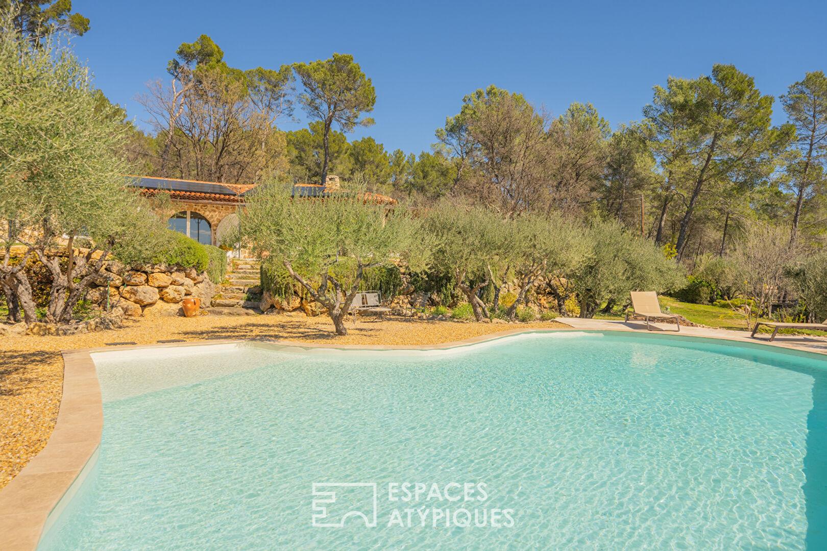 Dominant un paysage préservé de collines et de forêts, cette villa de plain-pied déploie 200 m² de raffinement sur un terrain arboré d’oliviers et de pins d’1.5 hectare. Véritable joyau de l’immobilier de prestige, cette demeure marie avec brio l’authenticité des parements de pierres et le confort d’une rénovation moderne, à quelques minutes d’un village provençal de caractère.