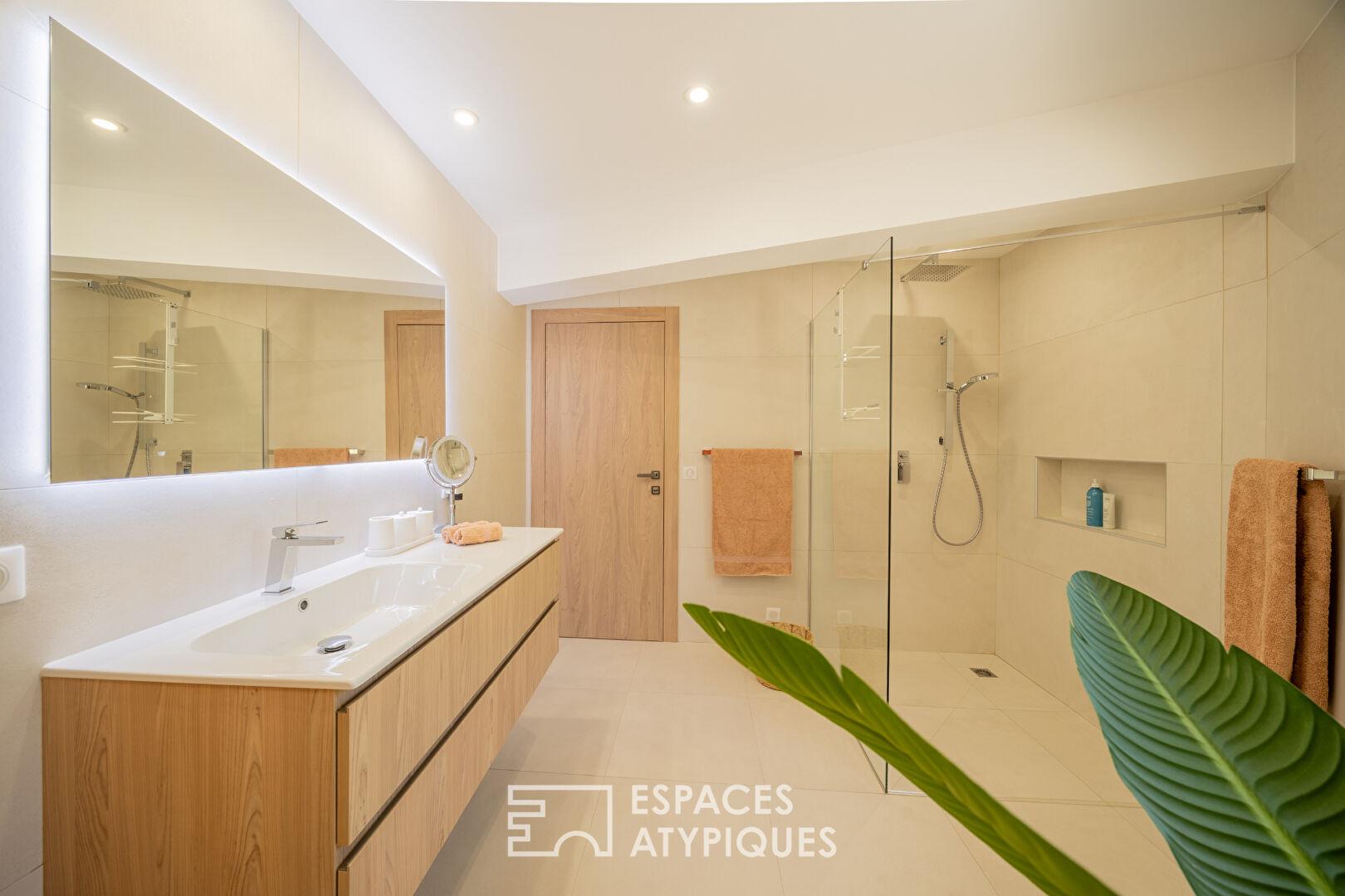 Le coin nuit a été pensé comme un refuge intime : la suite parentale dispose d’une salle de bain complète et d’un dressing, tandis que trois autres chambres spacieuses, dont une avec salle d’eau privative, offrent un confort absolu pour la famille ou les invités.