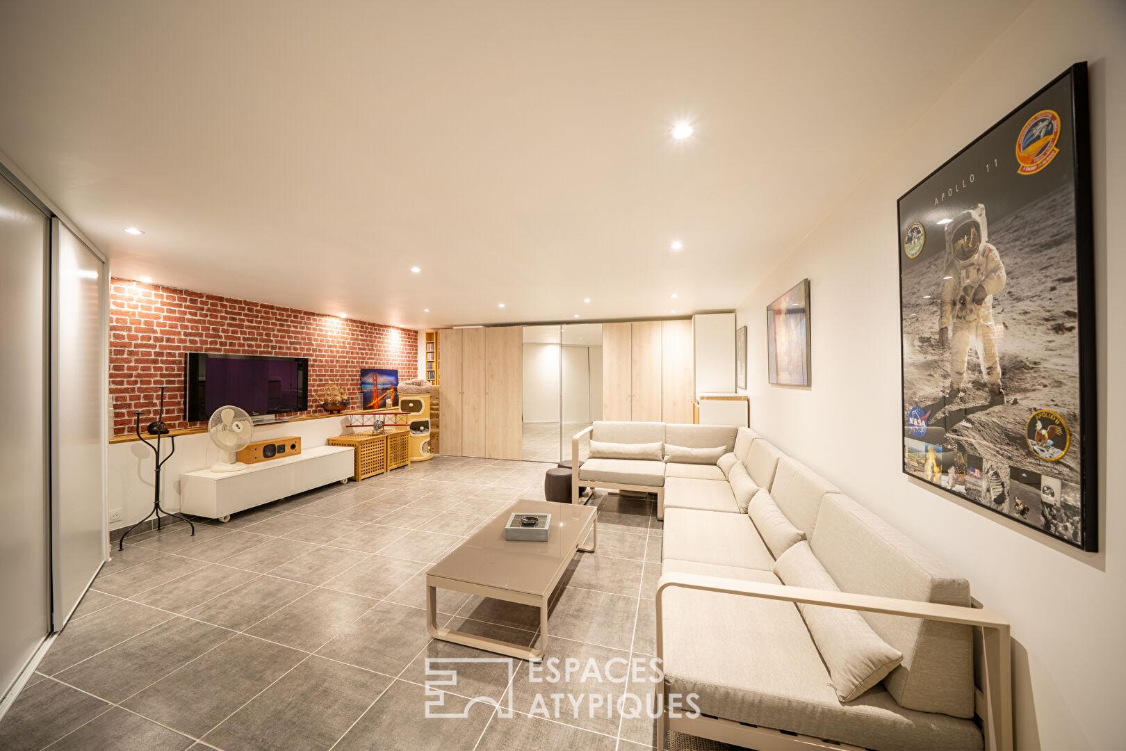 Un sous-sol total, accessible directement de l’intérieur, révèle un potentiel exceptionnel de 200 m² supplémentaires pour l’aménagement d’une salle de sport, d’un home-cinéma ou d’un espace bien-être. Un grand garage fermé et un atelier complètent les prestations techniques de ce bien rare.