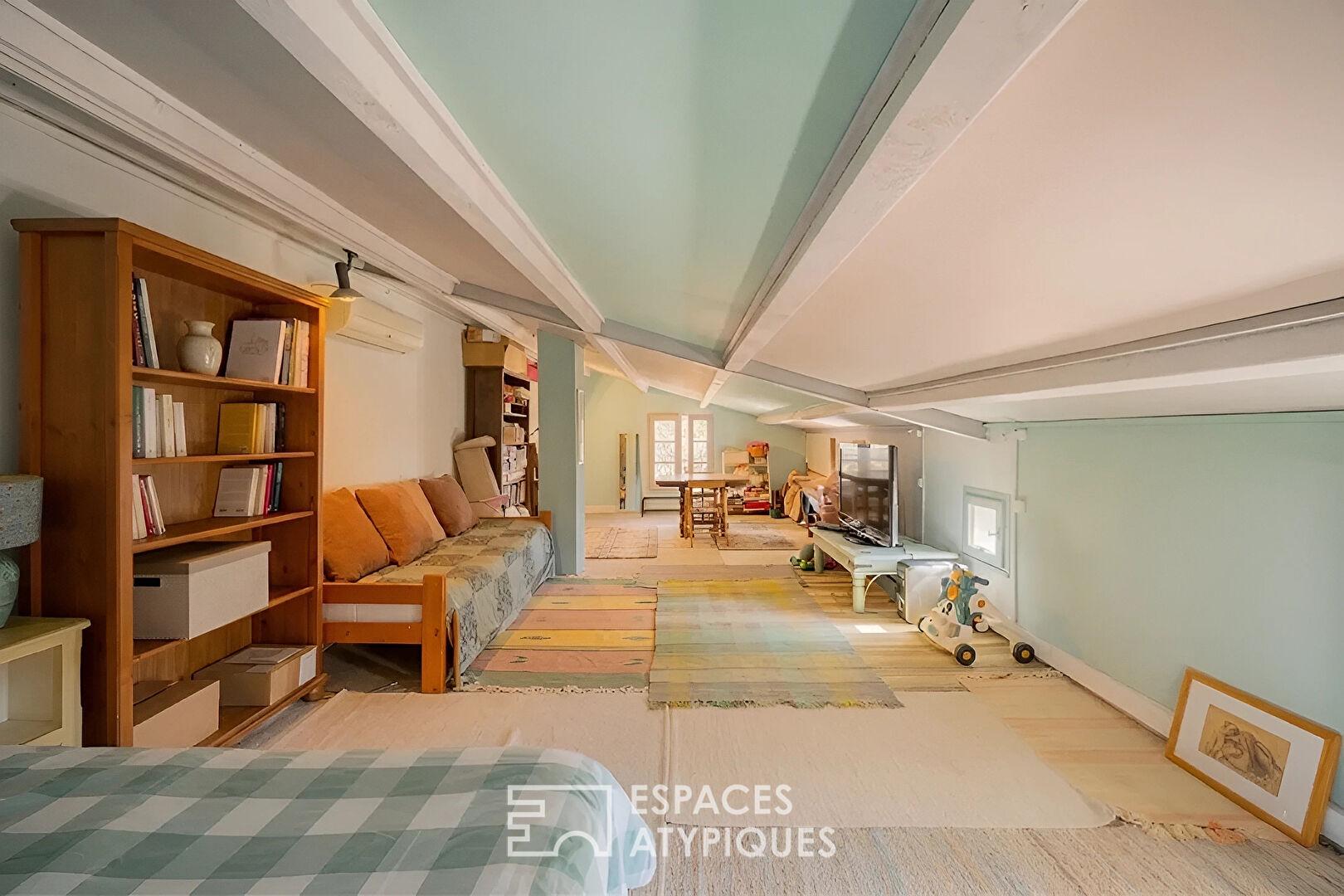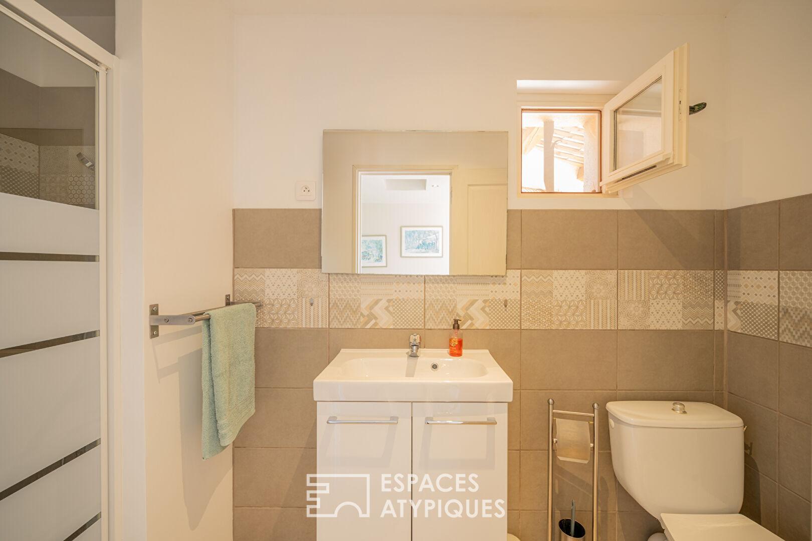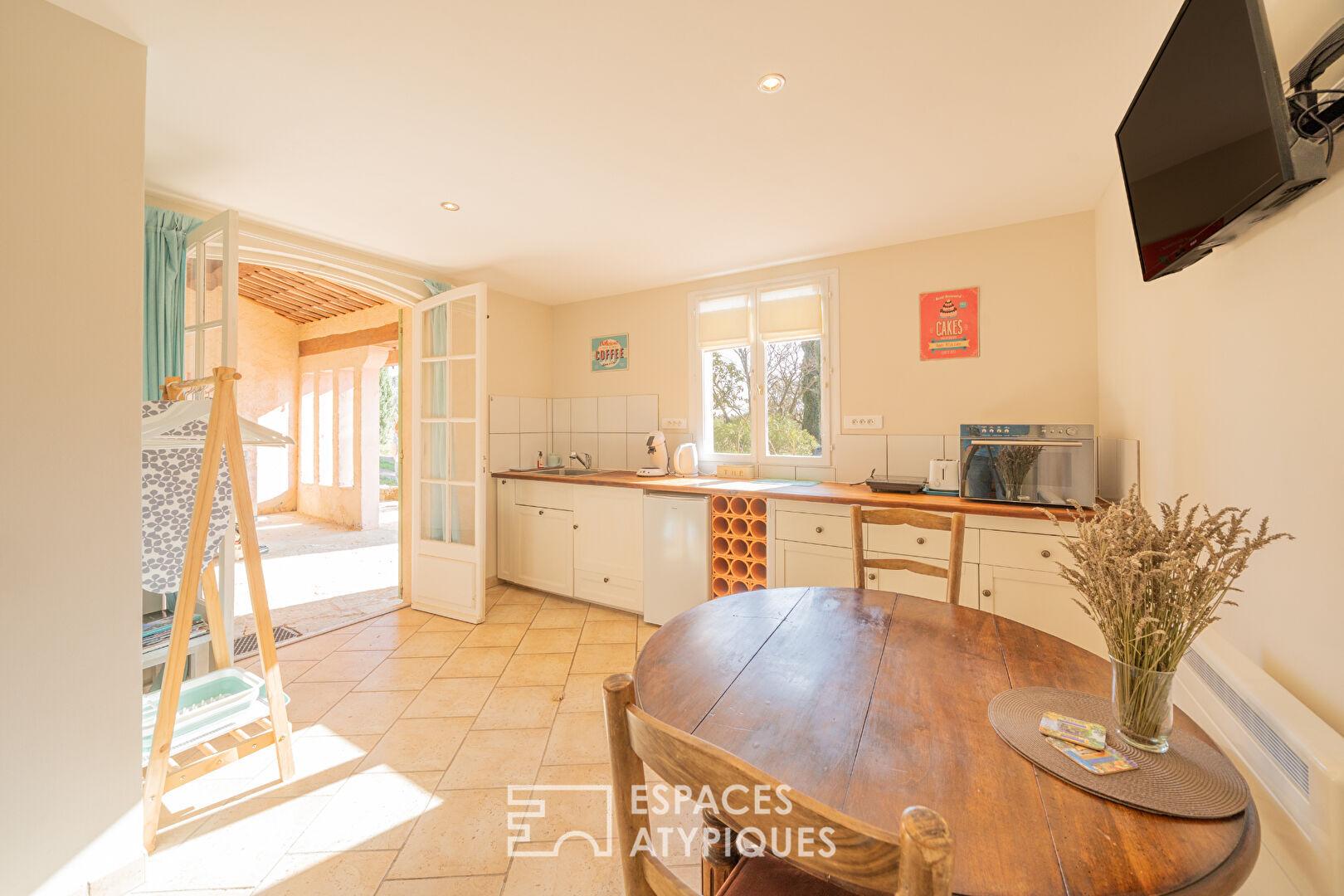 Un studio indépendant d’environ 20 m², doté d’une cuisine et d’une salle d’eau, permet d’envisager des revenus locatifs ou d’accueillir des invités en toute intimité.