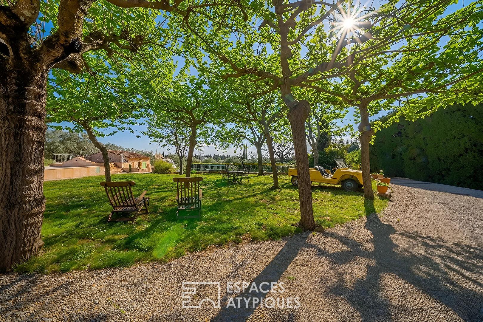 À l’extérieur, le parc s’organise en restanques douces alimentées par un arrosage automatique via une source privée.
