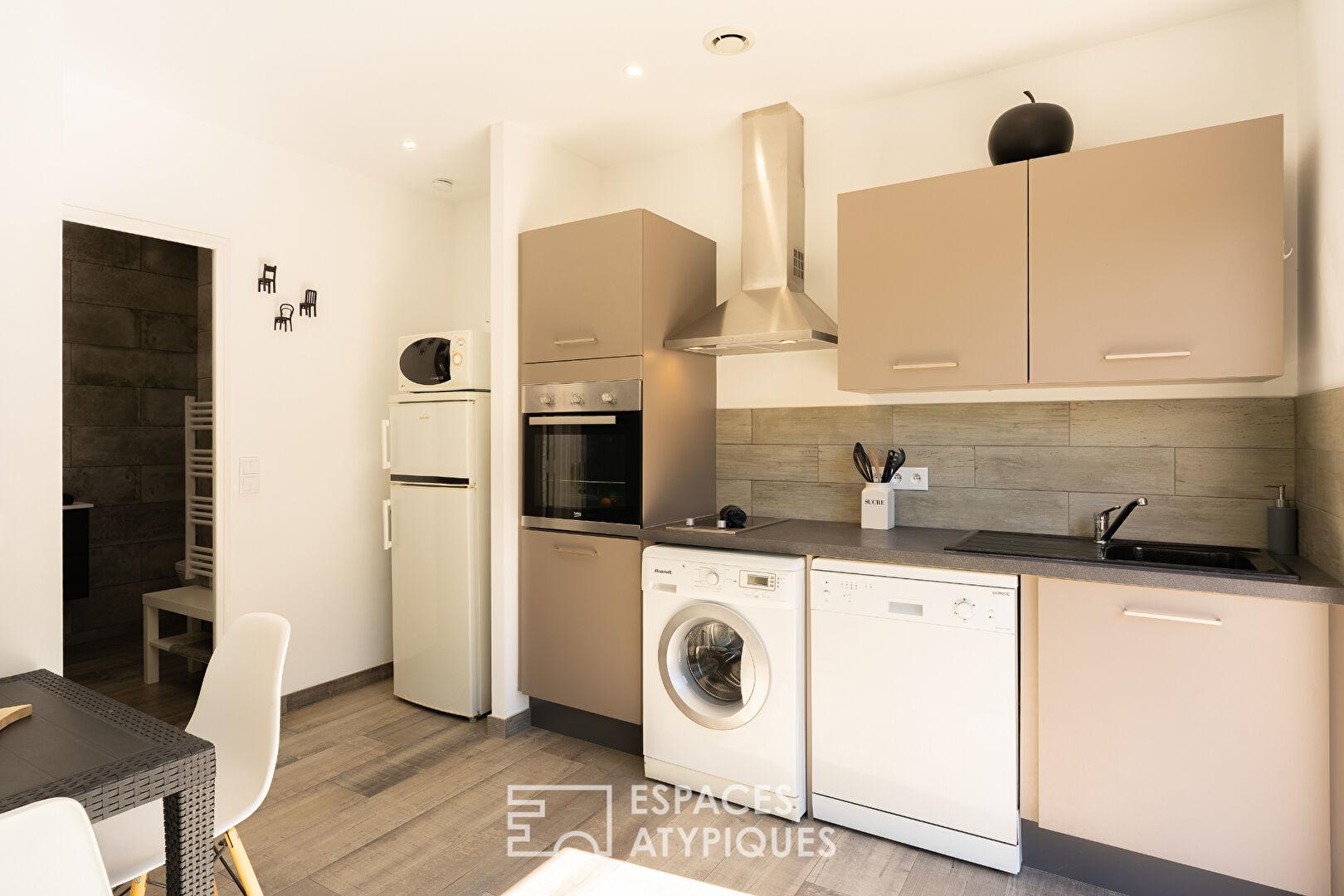 Atout rare, un garage climatisé de plus de 65 m² abrite un laboratoire indépendant, offrant aux futurs acquéreurs un lieu idéal pour une activité artistique ou professionnelle.