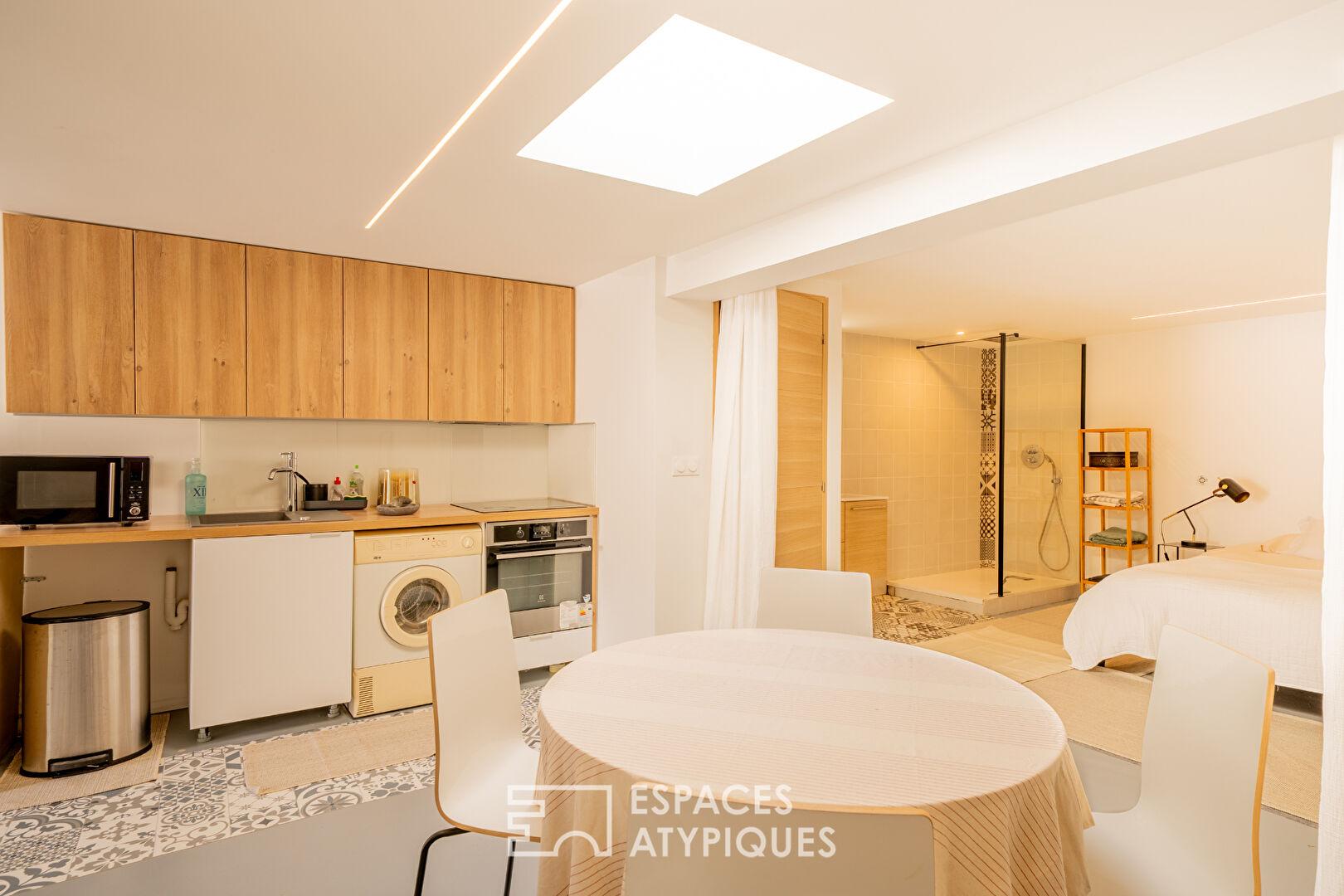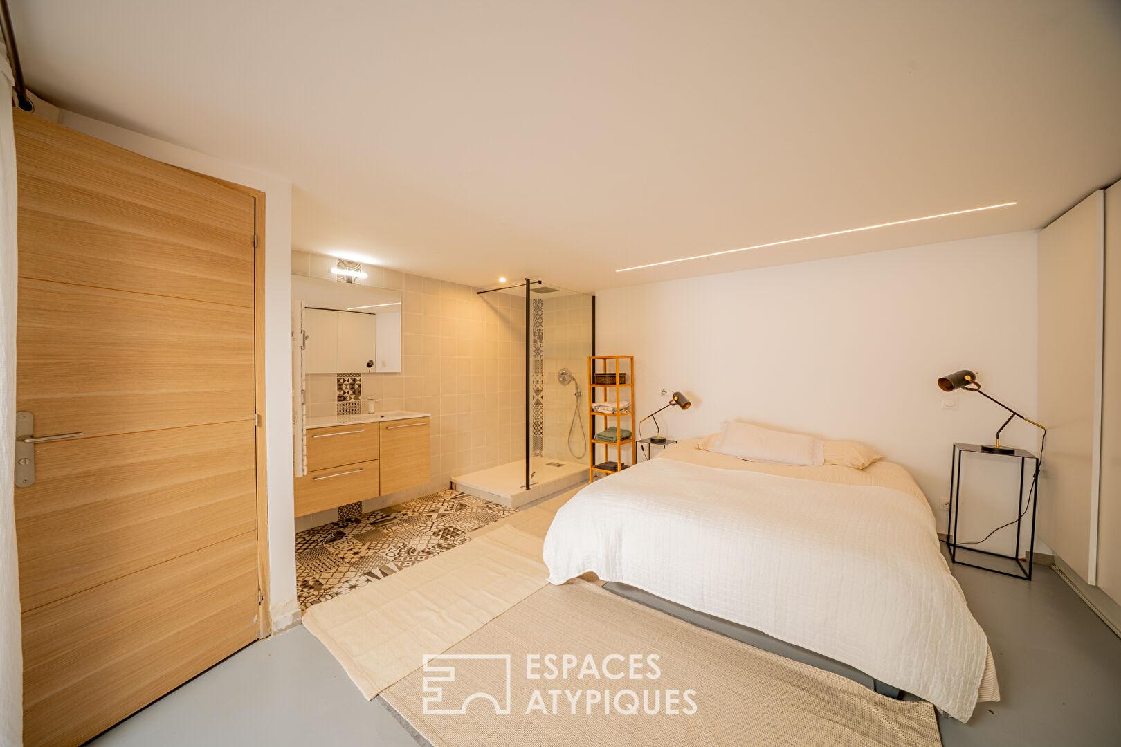 L’espace nuit propose une suite parentale de 31 m² ainsi que deux chambres avec un accès indépendant. Un studio de réception d’environ 21 m² complète l’ensemble.