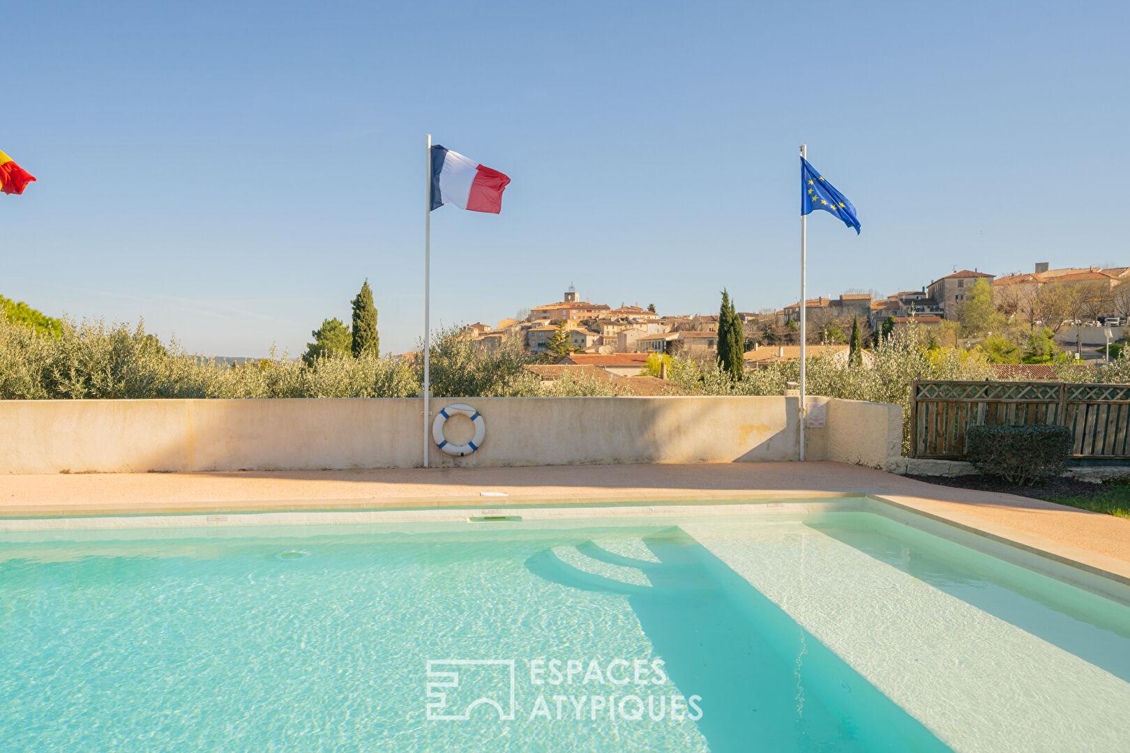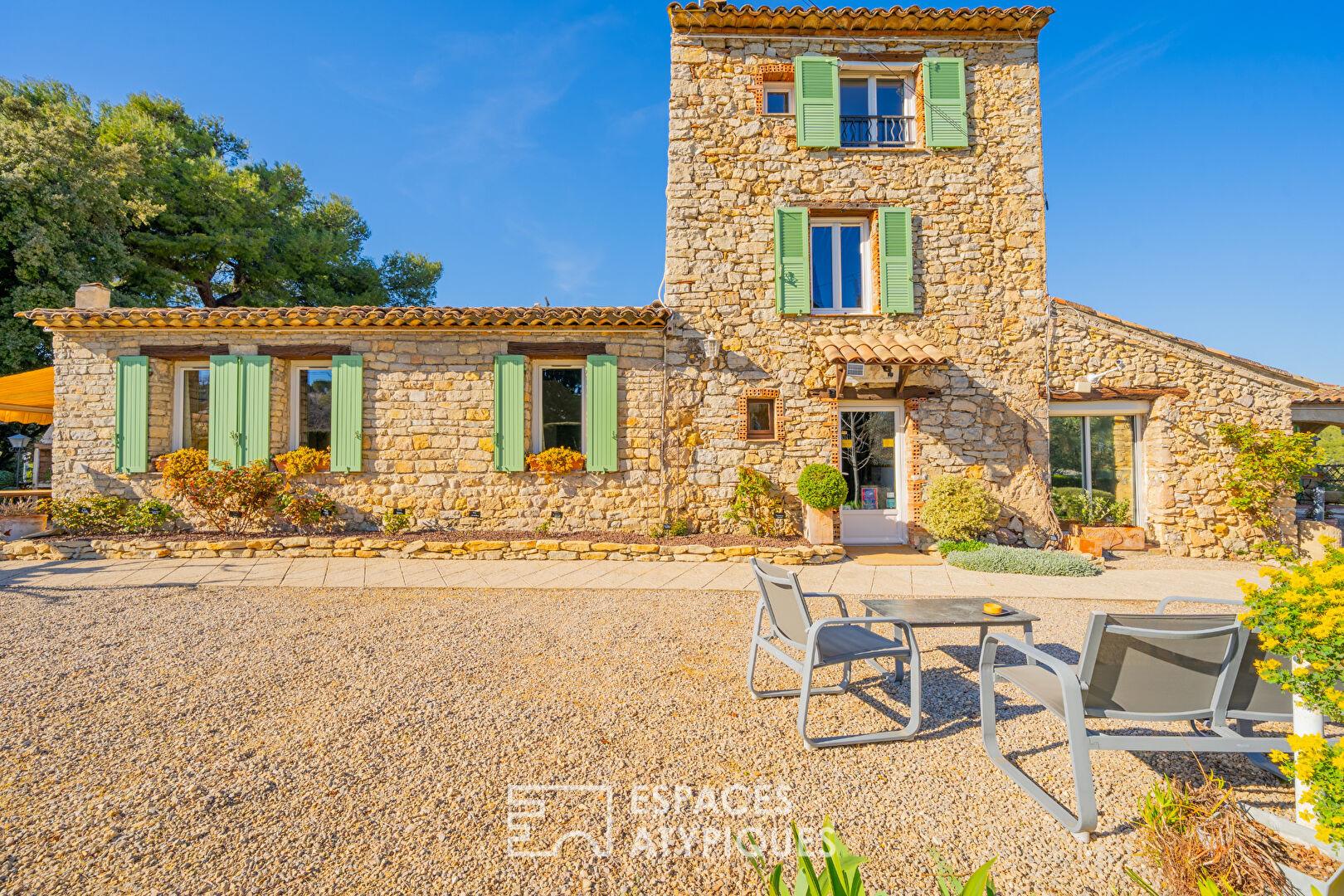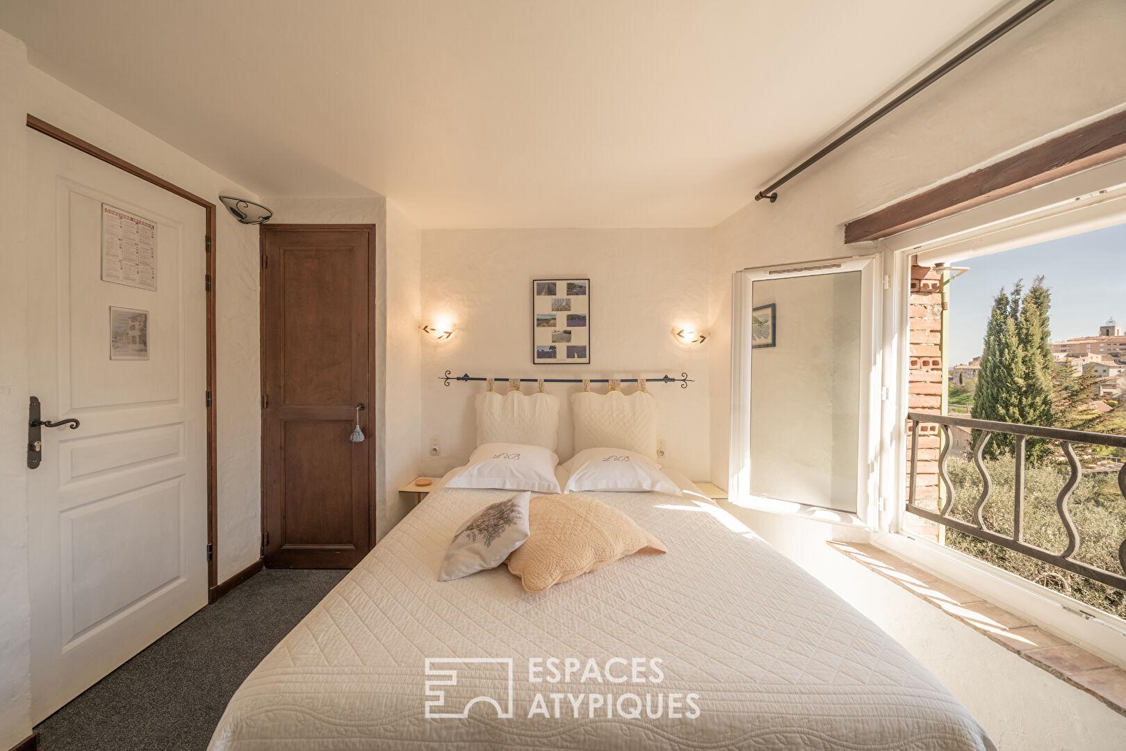 Les extérieurs dévoilent de vastes terrasses arborées, une piscine et un jacuzzi, le tout sublimé par un panorama spectaculaire embrassant le village, le Massif des Maures et le Rocher de Roquebrune.