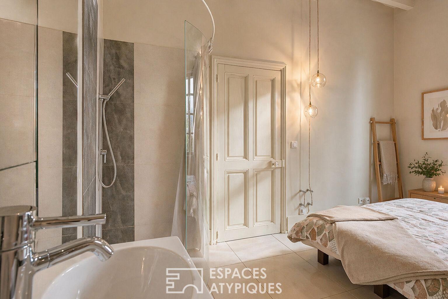 Entièrement rénové, ce bien du XVIIIe siècle conjugue avec subtilité le cachet de l’ancien et le confort contemporain. La réhabilitation met en valeur de magnifiques plafonds à la française, une cheminée en marbre surmontée de son trumeau d’époque, tout en intégrant des prestations modernes de qualité : plancher chauffant, adoucisseur d’eau, cuisine sur mesure et salle de bain de fabrication italienne.