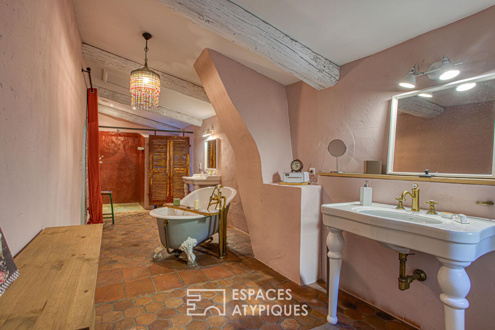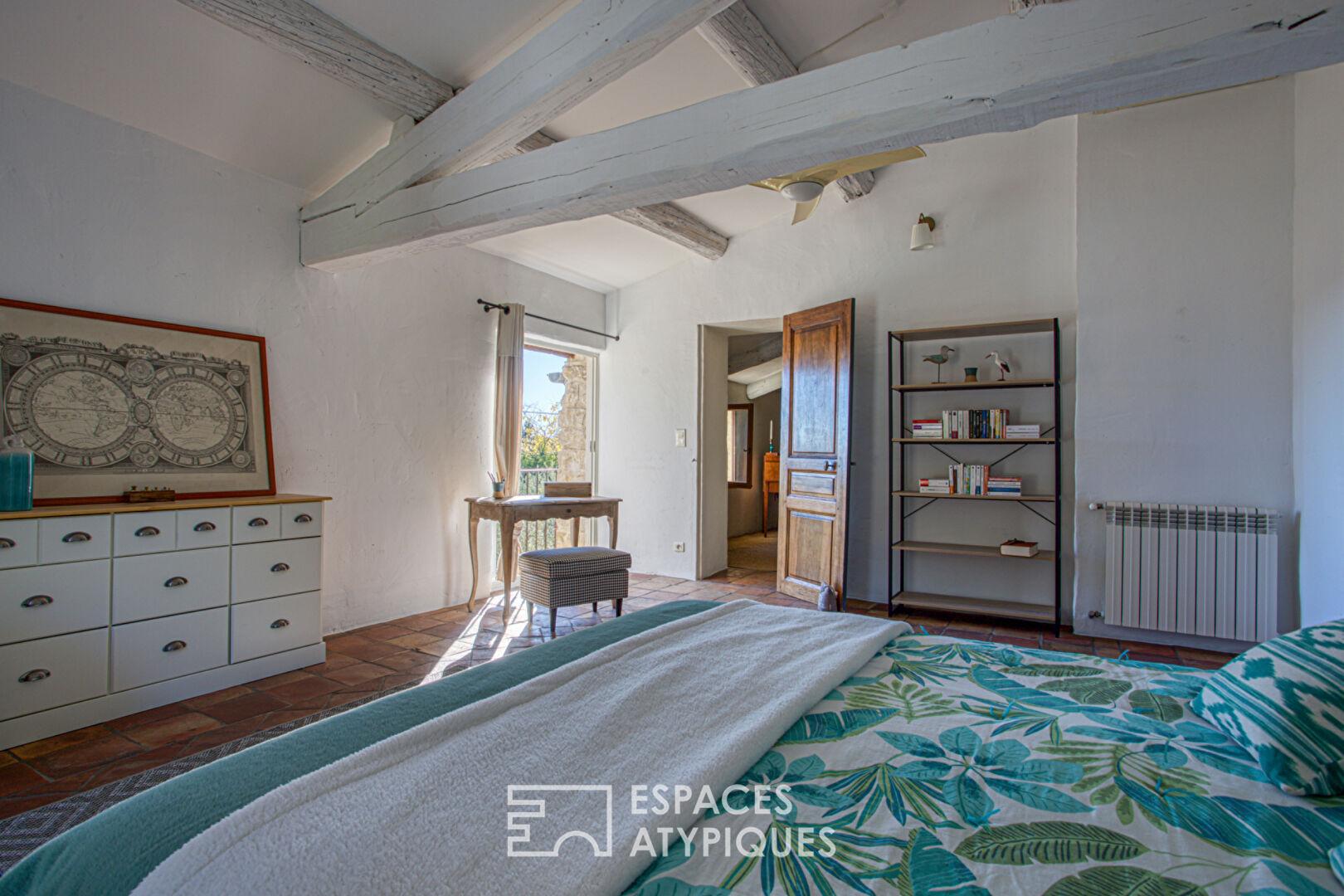 Le rez-de-chaussée, habillé de parefeuilles, propose la partie jour, avec cuisine, salon cheminée, bureau ou chambre, buanderie… Toutes ces pièces ont des ouvertures sur la cour. La partie nuit se trouve à l’étage avec de magnifiques chambres, un coin cosy et une salle de bain tellement atypique et agréable. Avec ces prestations haut de gamme, ce bien dispose également de grandes surfaces annexes (garages et ateliers, bureaux) aux multiples possibilités… ce mas est unique.
