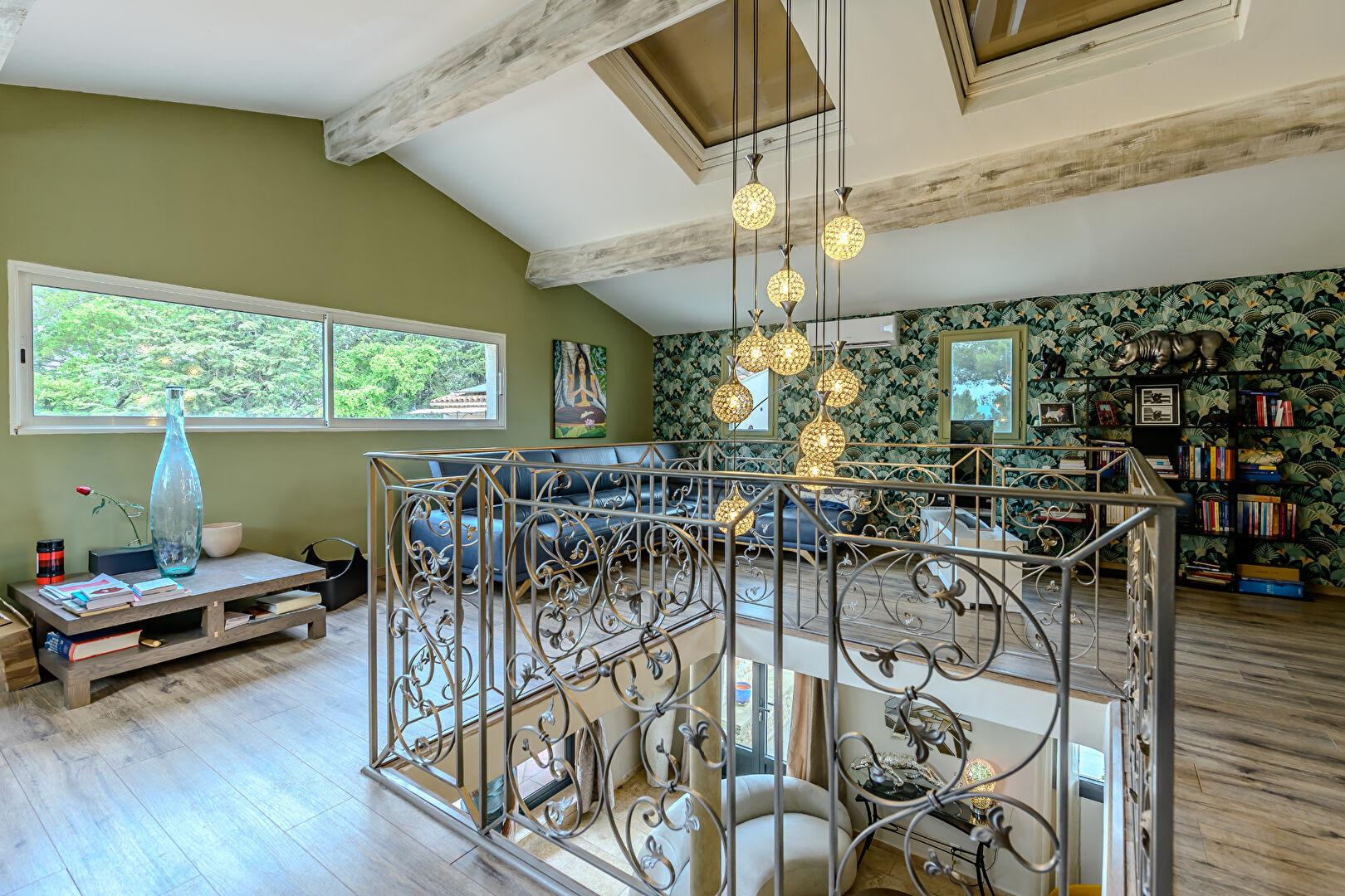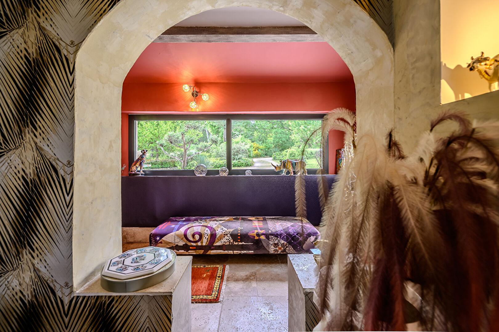 Implantée au coeur d’un parc arboré de 1,3 hectare, la propriété compose un véritable écrin vivant, mêlant une multitude d’essences et de floraisons qui se succèdent au fil des saisons. Entre pinède, jardin paysagé, potager en carrés surélevés alimenté par les eaux de pluie et terrasses disséminées, les extérieurs offrent une succession d’ambiances intimistes, de recoins secrets et d’espaces de contemplation. Une piscine de 10 x 5 m vient parfaire cet art de vivre en pleine nature.