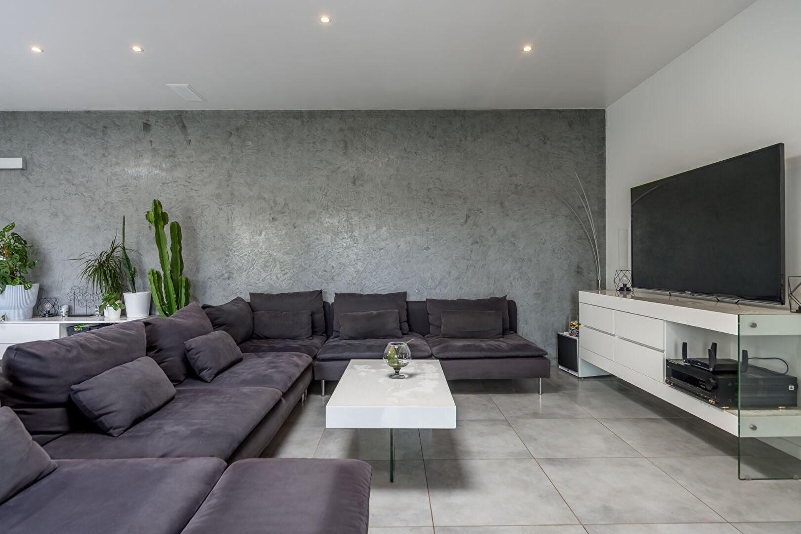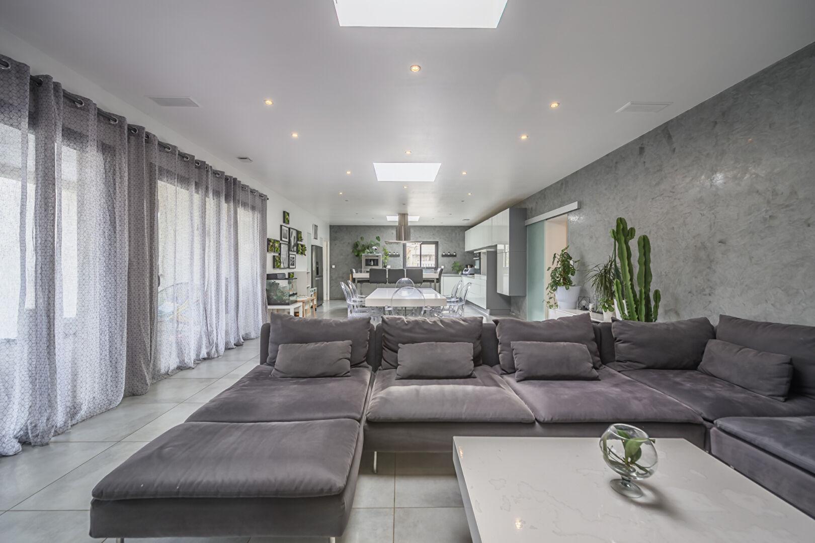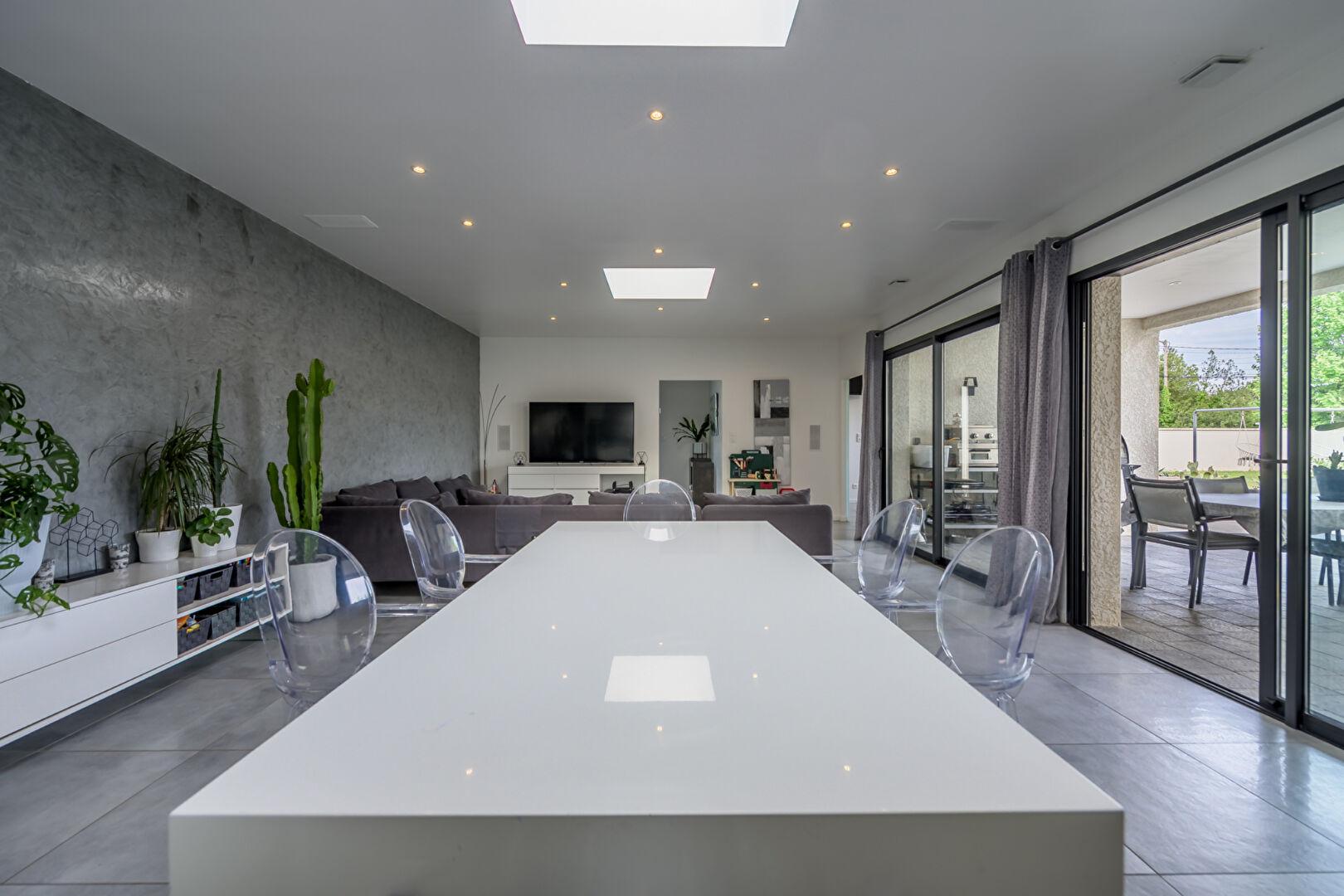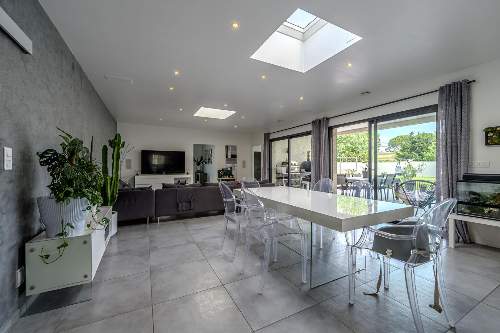 La maison bénéficie de volumes parfaitement conçus. Développant 180 mètres carrés, elle comporte un grand espace de vie très lumineux. Cet espace est conçu pour faciliter la circulation entre l’intérieur et l’extérieur.