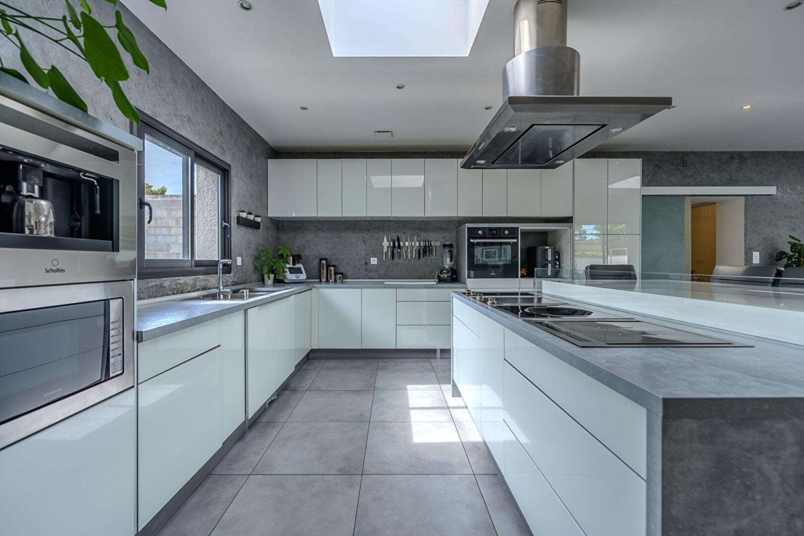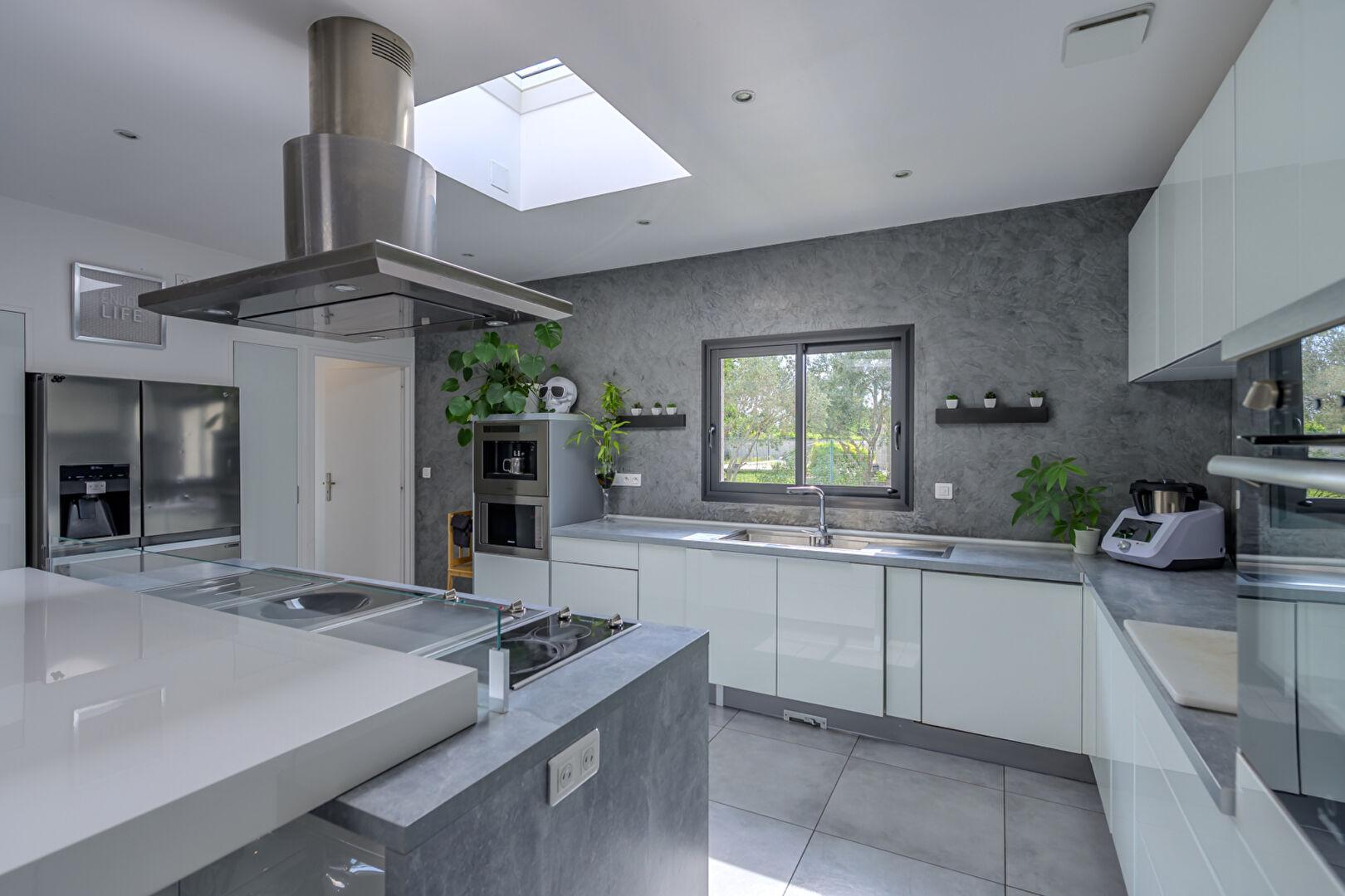 La cuisine moderne et élégante, avec des équipements de haute qualité. est parfaitement intégrée à l’espace de vie et crée une atmosphère conviviale. La maison comporte quatre chambres, dont une suite confortable et une pièce qui peut servir de bureau, salle de jeux où de chambre d’enfant selon les besoins. Une pièce cellier / buanderie et un garage complètent le bien.