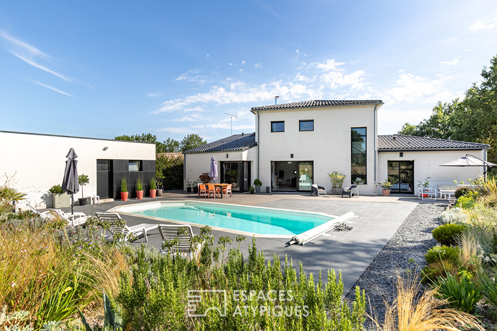 D’architecture contemporaine par la juxtaposition de différents volumes et l’alliance du noir et du blanc, les espaces ont été conçus avec fluidité et générosité faisant la part belle à une grande luminosité.