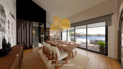 Au rez-de-terrasse, une vaste pièce de vie de 45 m², ouverte sur la terrasse avec une vue panoramique sur l’océan, constituera un espace idéal pour des moments de détente. La cuisine de 10 m², équipée et ouverte, complètera cet espace convivial, parfait pour les réceptions ou les soirées en famille. Ce niveau comprendra également une suite avec salle de bain privative, ainsi que deux chambres confortables avec une salle de douche partagée.