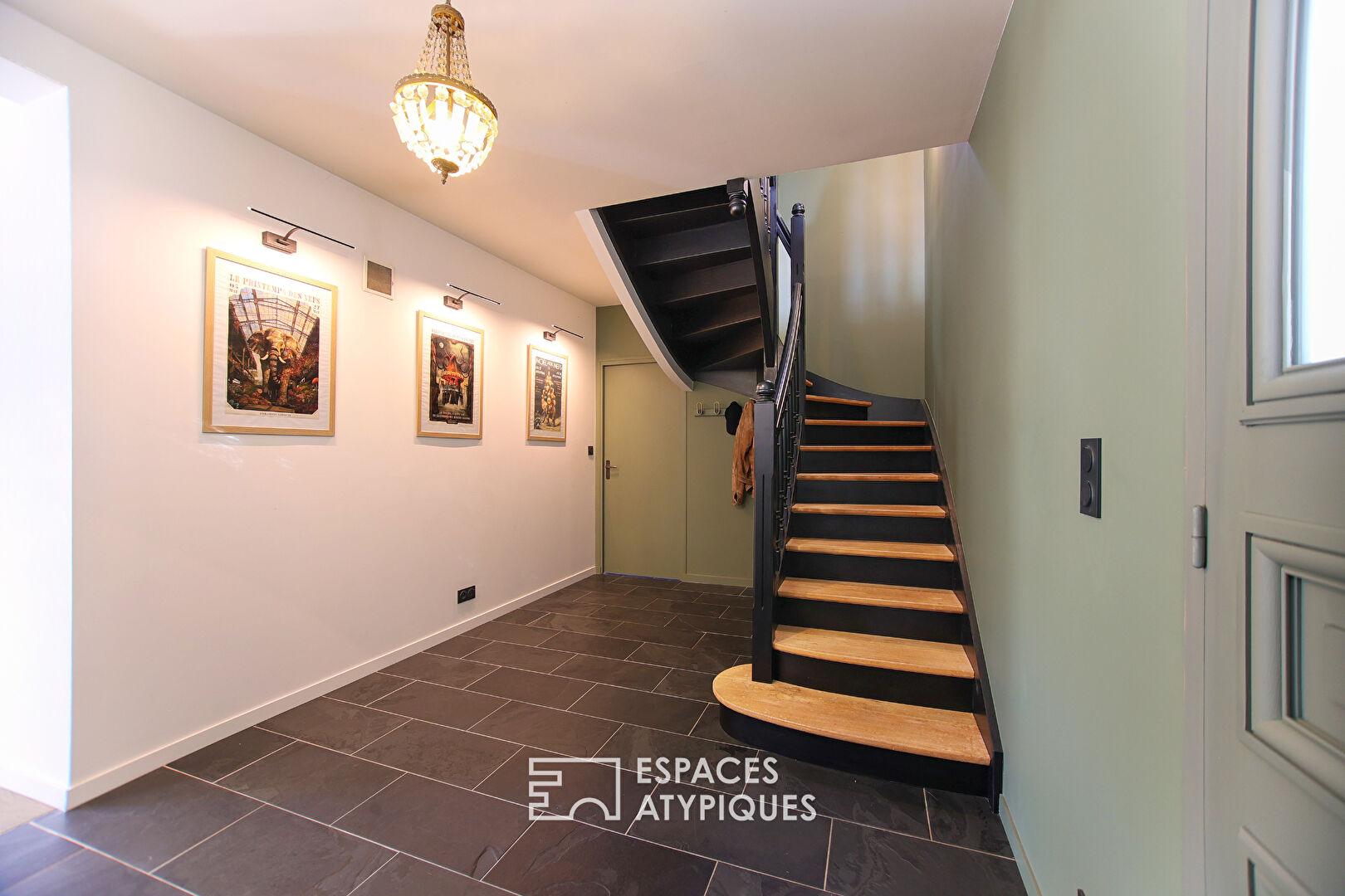 Dès l’entrée, les volumes généreux et la fluidité des circulations révèlent un intérieur conçu pour le confort au quotidien. Le rez-de-chaussée propose un bureau, une buanderie, des WC indépendants ainsi qu’une vaste pièce de vie baignée de lumière, prolongée par une arrière-cuisine fonctionnelle. À l’étage, l’espace nuit accueille trois chambres, une salle d’eau, des WC séparés ainsi qu’une suite parentale avec dressing et salle d’eau privative, offrant une distribution harmonieuse et une atmosphère chaleureuse.