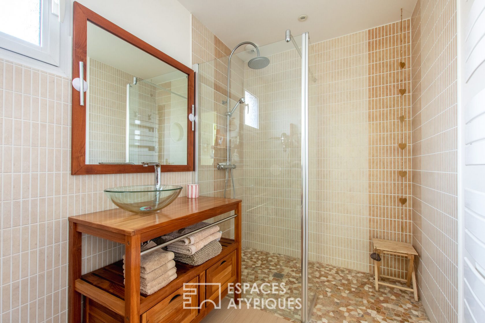 Au sein d’un village de charme qui surplombe cette forêt millénaire, cette maison au style résolument contemporain offre des volumes agréables et lumineux tournés vers la nature.