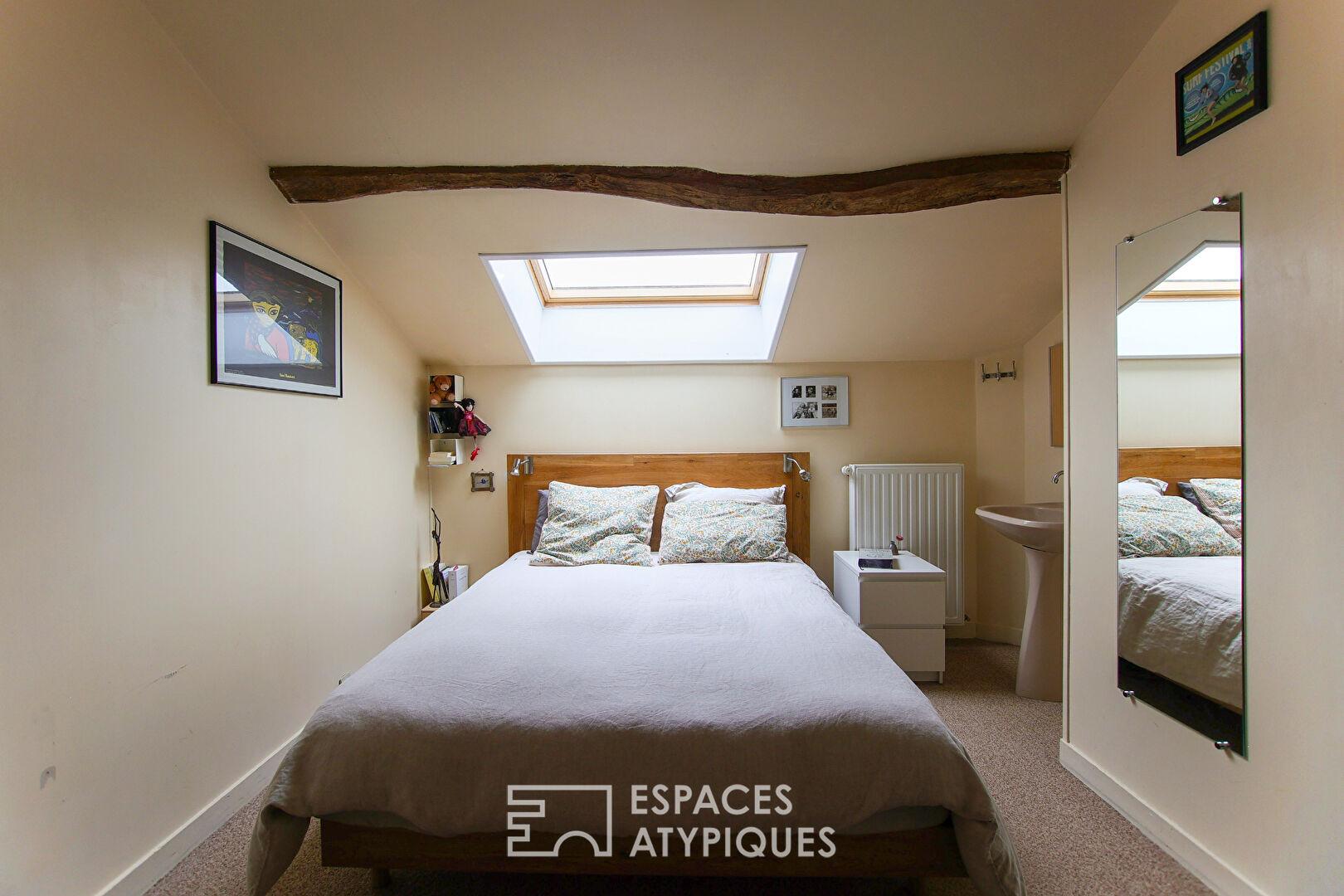 Bénéficiant d’une belle hauteur sous plafond, elle reçoit une mezzanine propice à l’installation d’un coin lecture ou d’un bureau.