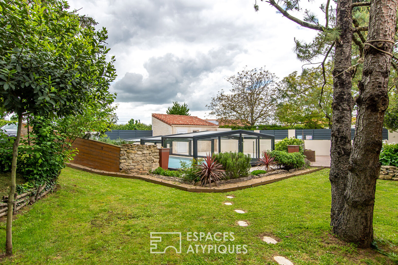 À l’extérieur, le terrain a été aménagé avec beaucoup d’intelligence. On y trouve un espace potager, un jardin d’agrément, de vastes terrasses ombragées et une piscine sécurisée avec ses sanitaires. La propriété offre également un carport mitoyen à la maison d’habitation ainsi qu’une vaste aire de stationnement pour les invités.