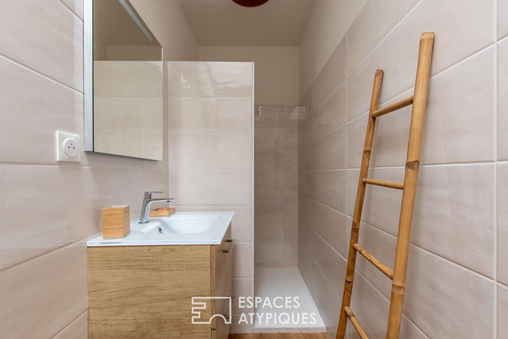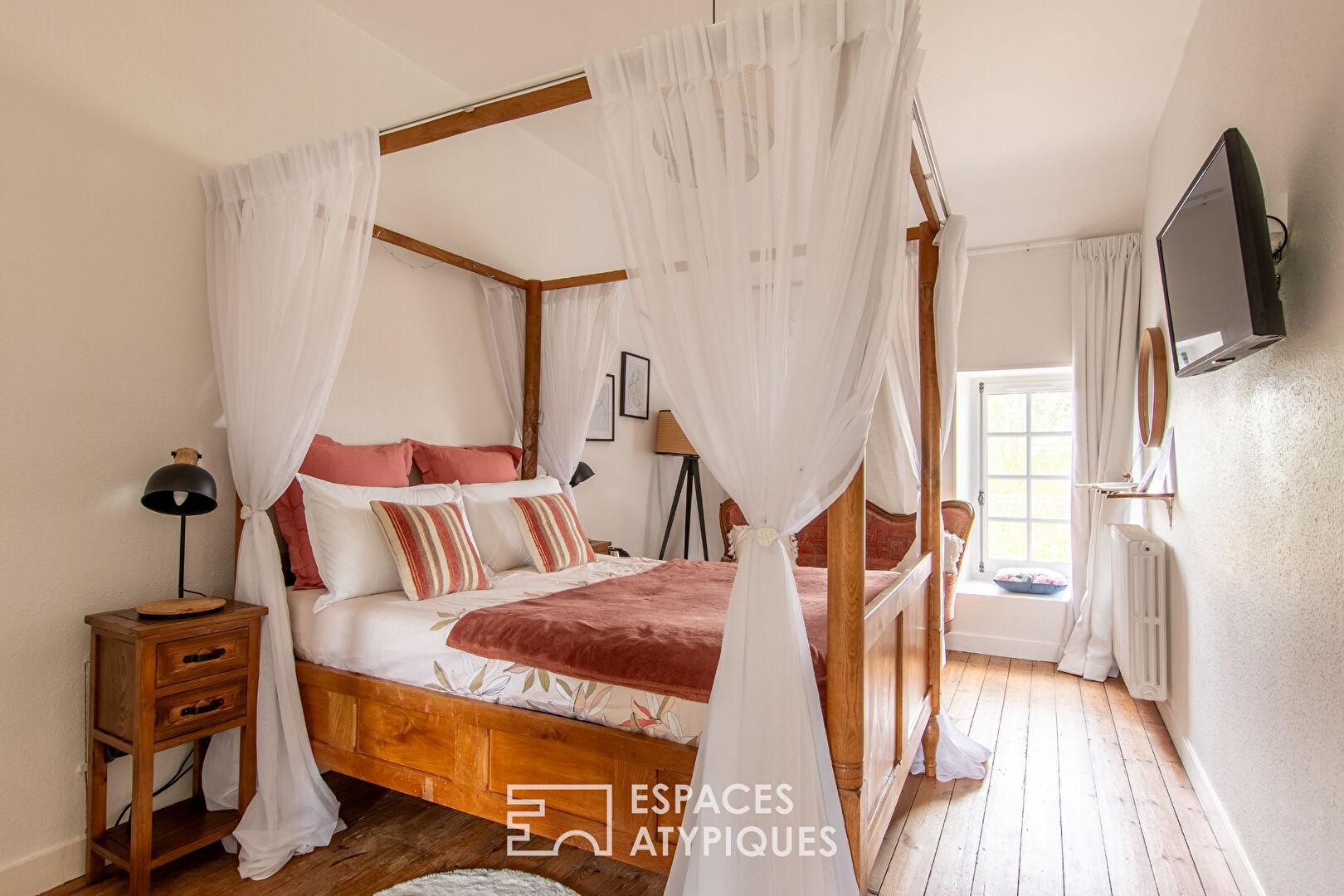 Le second étage offre une quatrième suite avec salle d’eau, baignée de lumière traversante, à l’ambiance très intimiste.