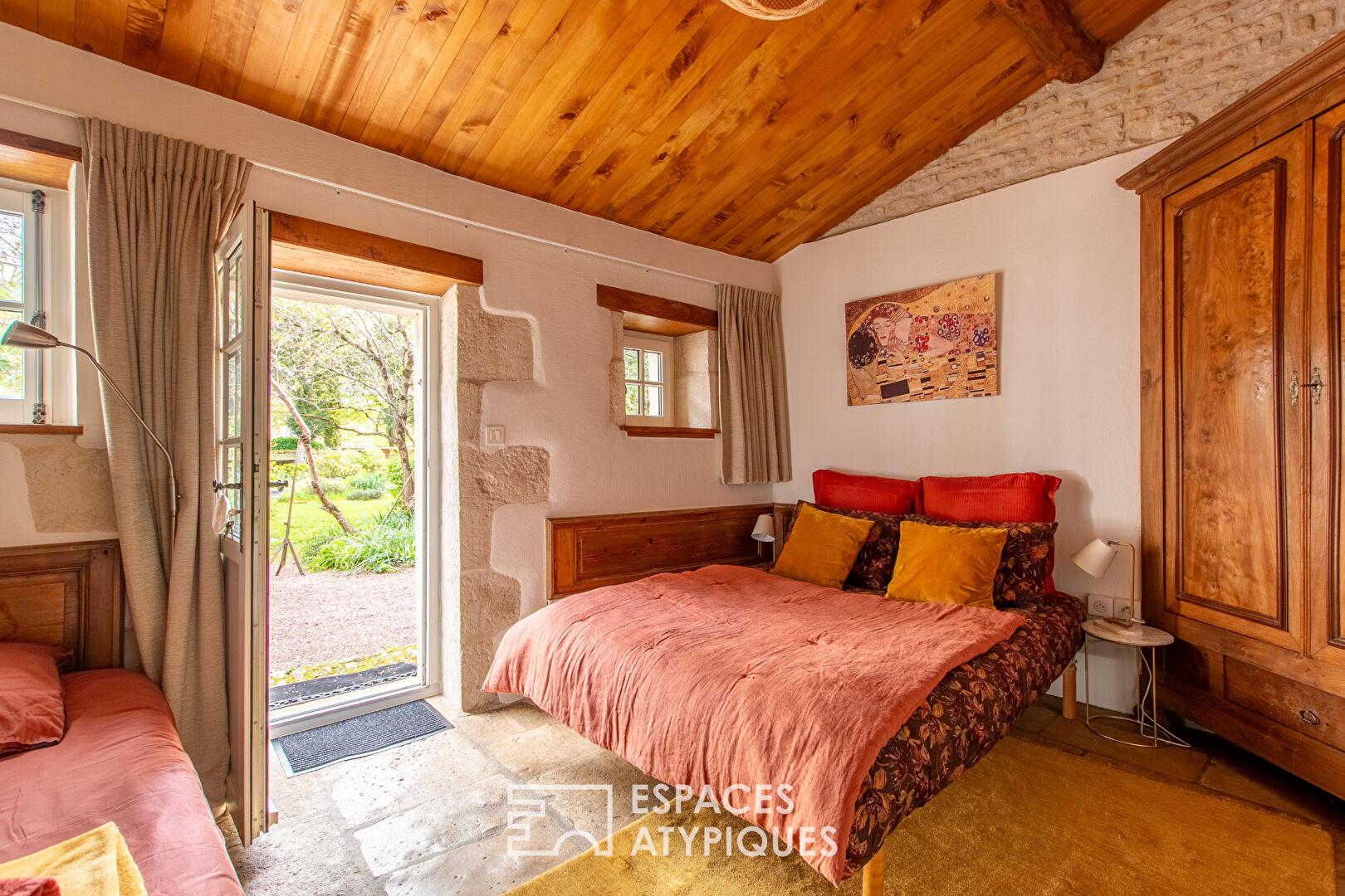 Une cinquième suite, au style campagne chic et totalement indépendante, offre un espace idéal pour recevoir et jouit d’un accès direct au jardin.