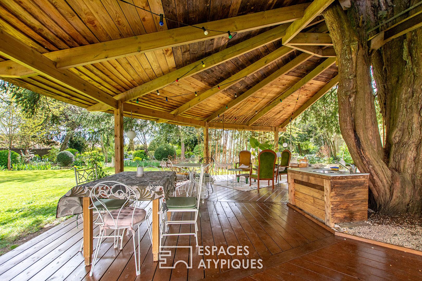Les extérieurs bénéficient d’un joli jardin d’accueil et d’un beau parc paysagé exposé au sud, accueillant plusieurs arbres remarquables. Un vaste kiosque offre une superbe terrasse couverte qui s’articule autour d’un if majestueux.