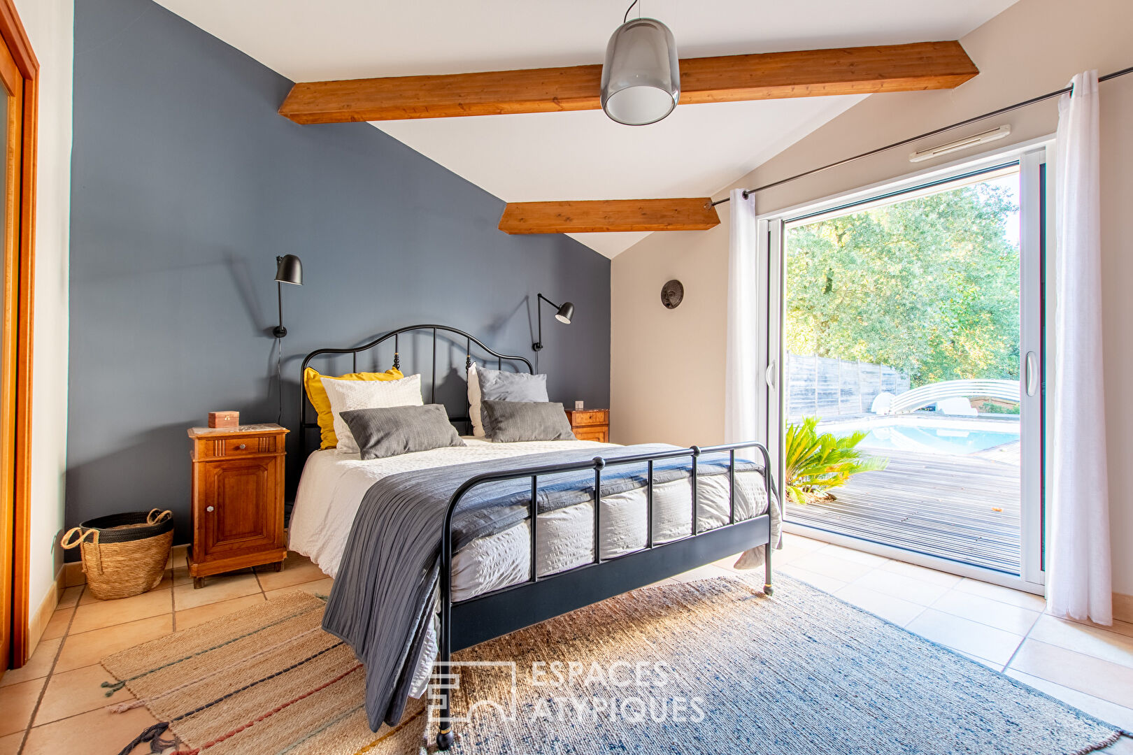 Cette villa se trouve à un kilomètre du bourg de la commune, à 18 kilomètres de l’entrée de La Roche-sur-Yon et à 20 kilomètres des plages vendéennes.