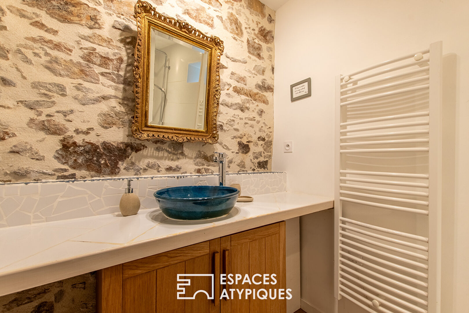 Située dans un hameau, au calme d’un environnement préservé, cette propriété allie le charme de la pierre au confort moderne.