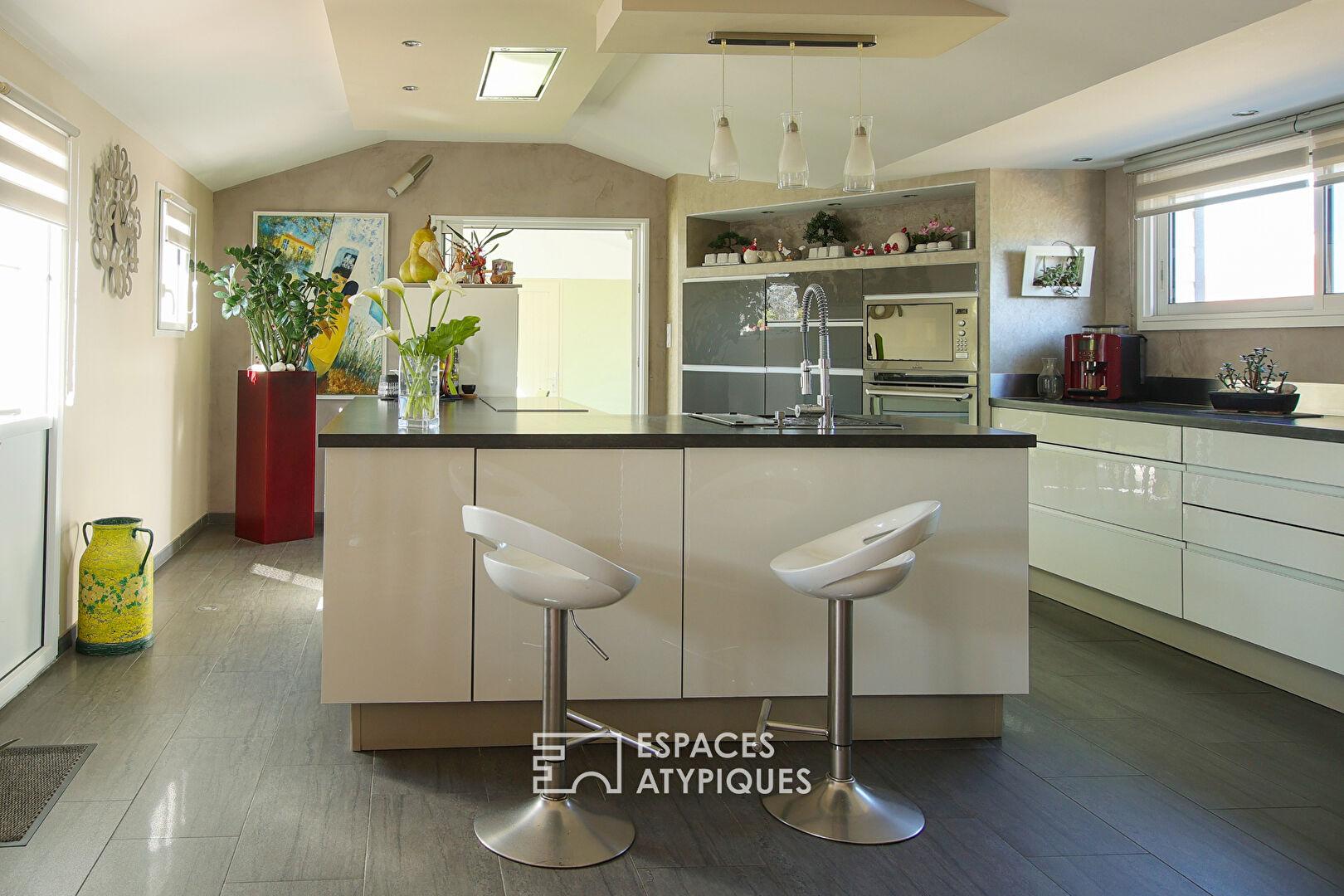 Véritable havre de paix sans aucun vis-à-vis, ce domaine se compose d’une maison d’architecte principale et d’une seconde habitation en parfaite harmonie, offrant un cadre de vie rare où la nature et le design se rencontrent.
