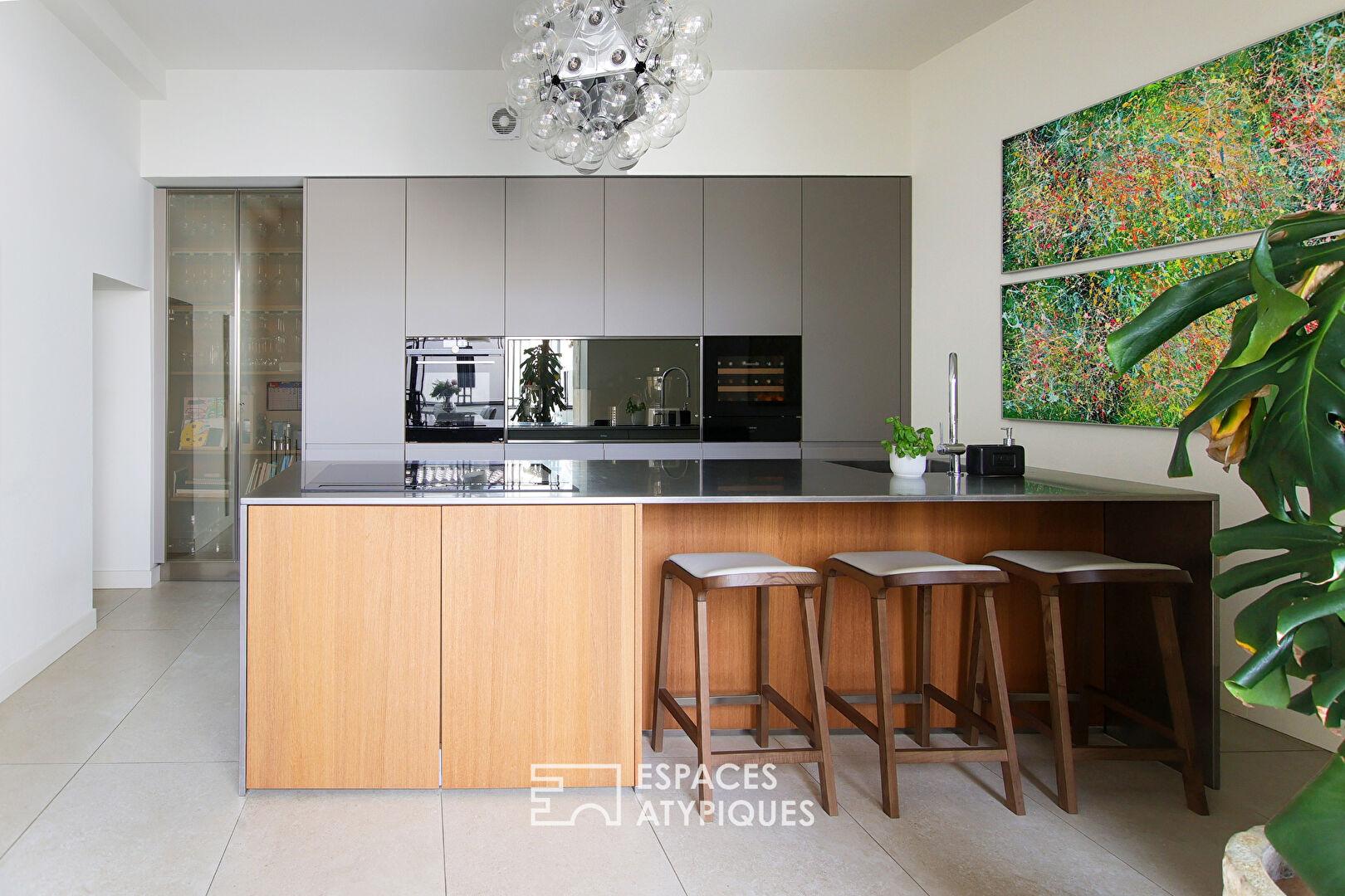 À l’extérieur, le jardin de 190 m², agrémenté d’une cour d’accueil pavée, d’une grille en fer forgé et d’une cuisine d’été, invite à la contemplation et à la détente. Côté pratique, un garage de plus de 30 m², une place privative ainsi qu’un local à vélos complètent les atouts de ce bien exceptionnel.