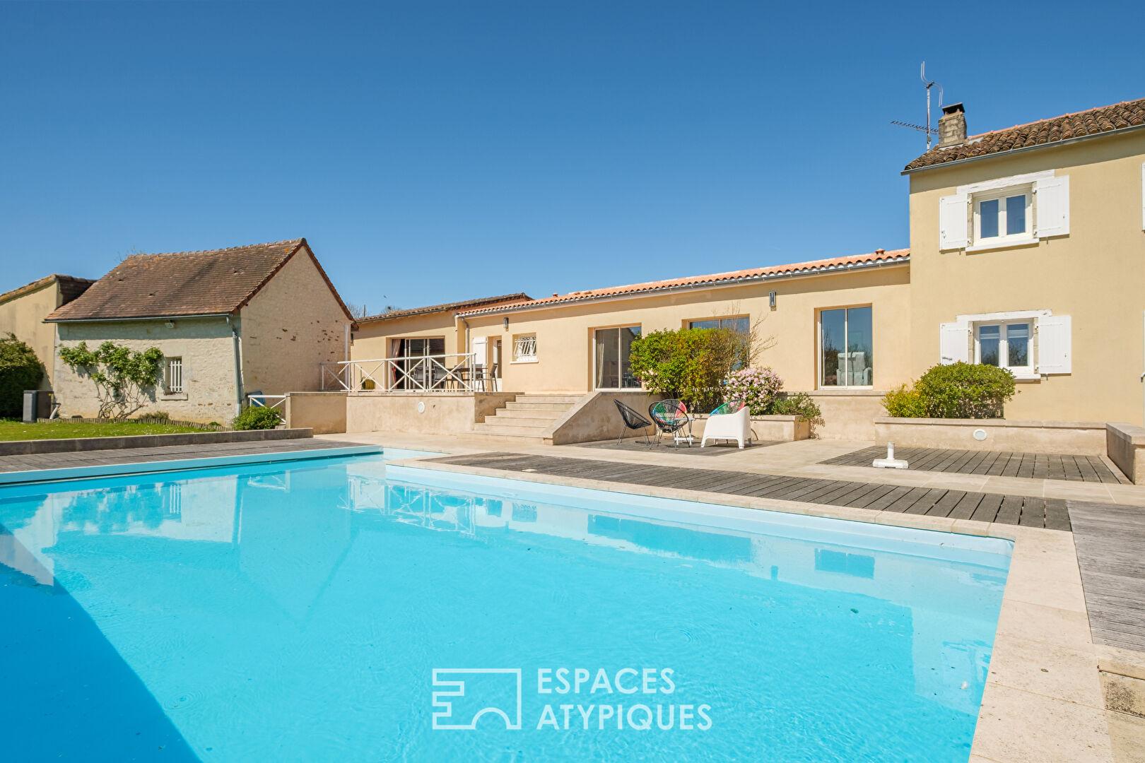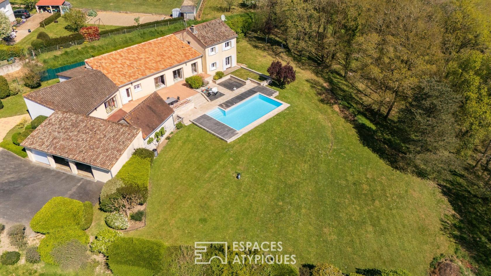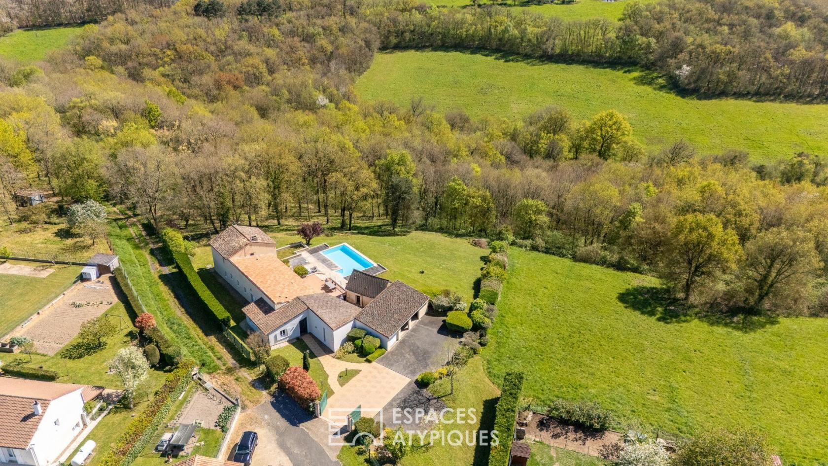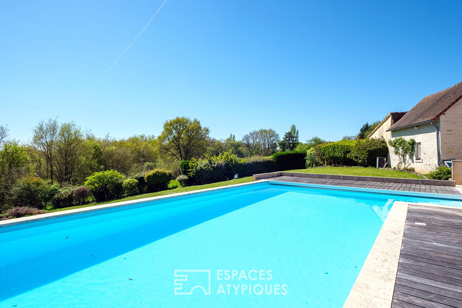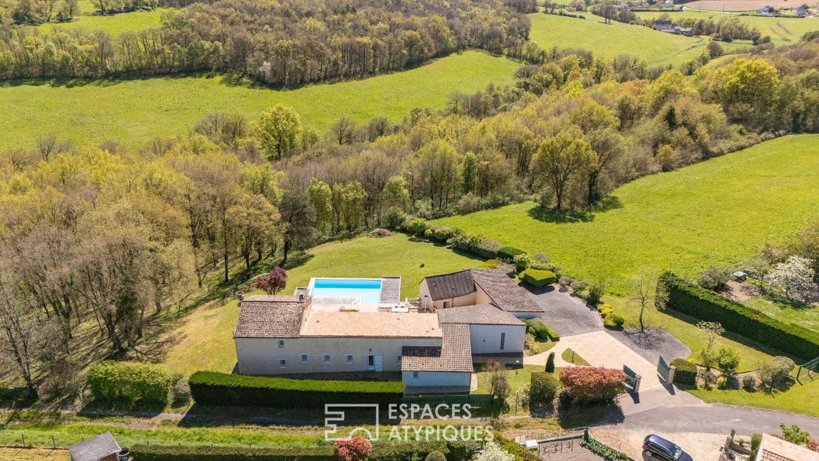 Longère revisitée avec piscine et salle de musique dans un cadre naturel privilégié