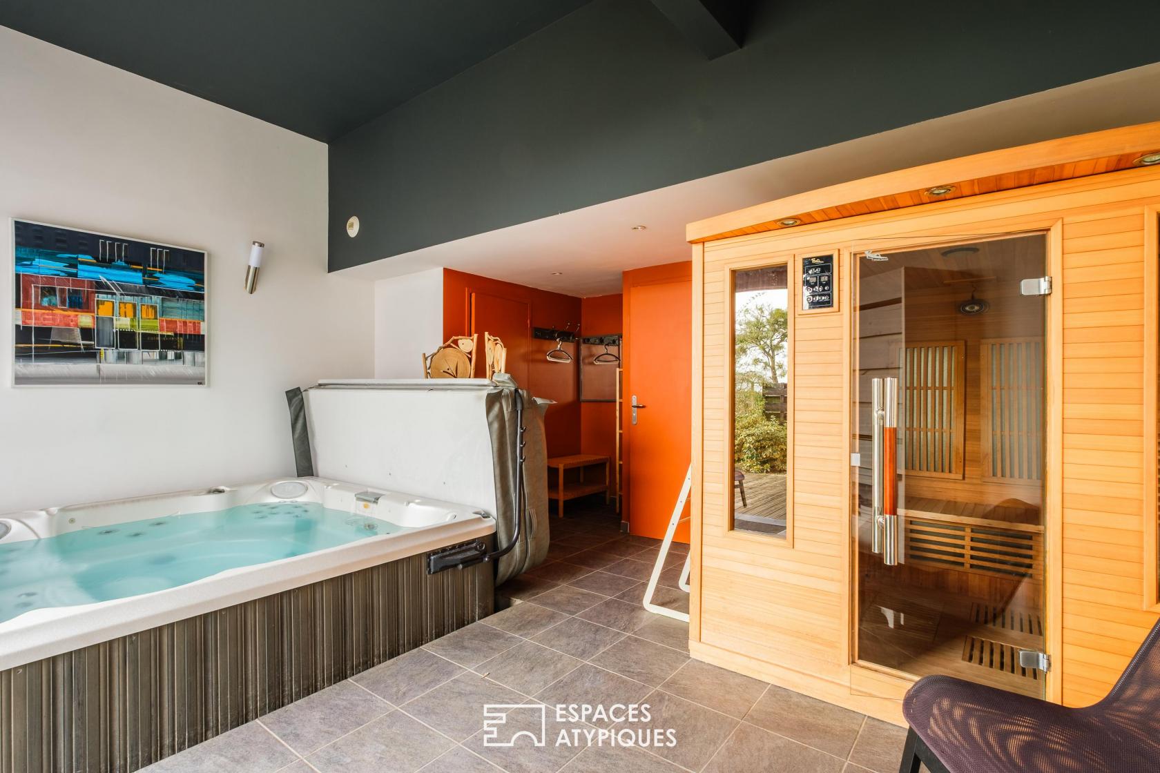 À l’extérieur, le jardin paysager accueille des terrasses privatives pour chaque lot, préservant intimité et quiétude. Des garages, de nombreuses dépendances et un espace bien-être équipé d’un spa et d’un sauna complètent cet ensemble d’exception. Sans aucun vis-à-vis, véritable gage de sérénité, la propriété se situe à proximité immédiate du Parc naturel régional de la Brenne, à 45 minutes de Poitiers et à 30 minutes d’une gare TGV.