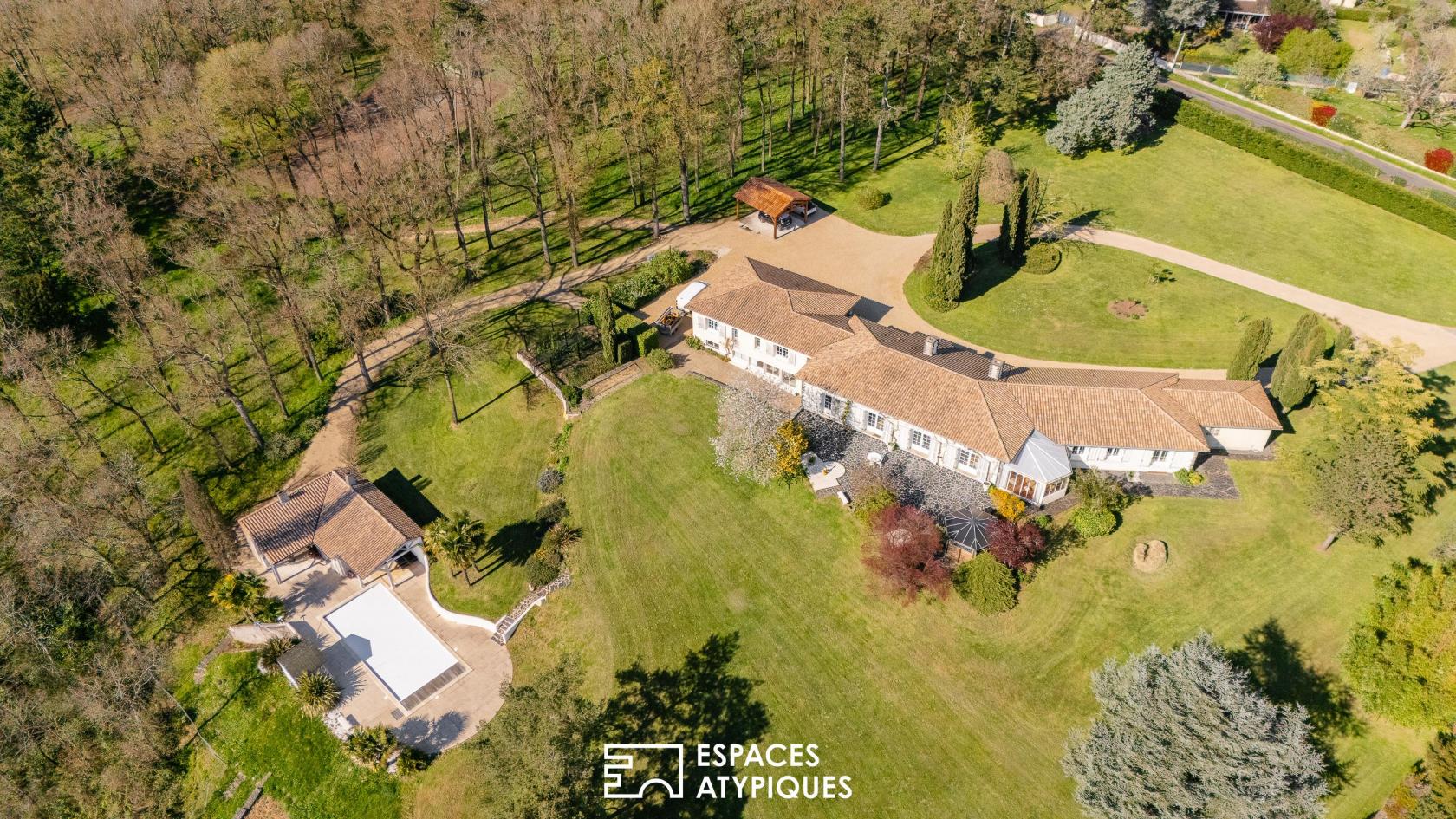 L’extérieur est une ode à l’art de vivre épicurien. Le parc, entièrement clos et protégé des regards, révèle des prestations haut de gamme avec un espace piscine et son pool-house dédié, complétés par un court de tennis privé pour des échanges sportifs au coeur de la verdure.