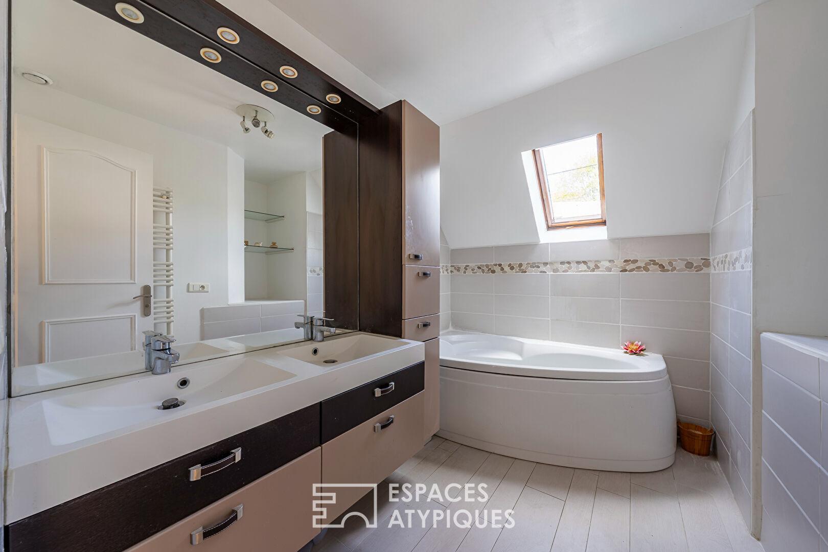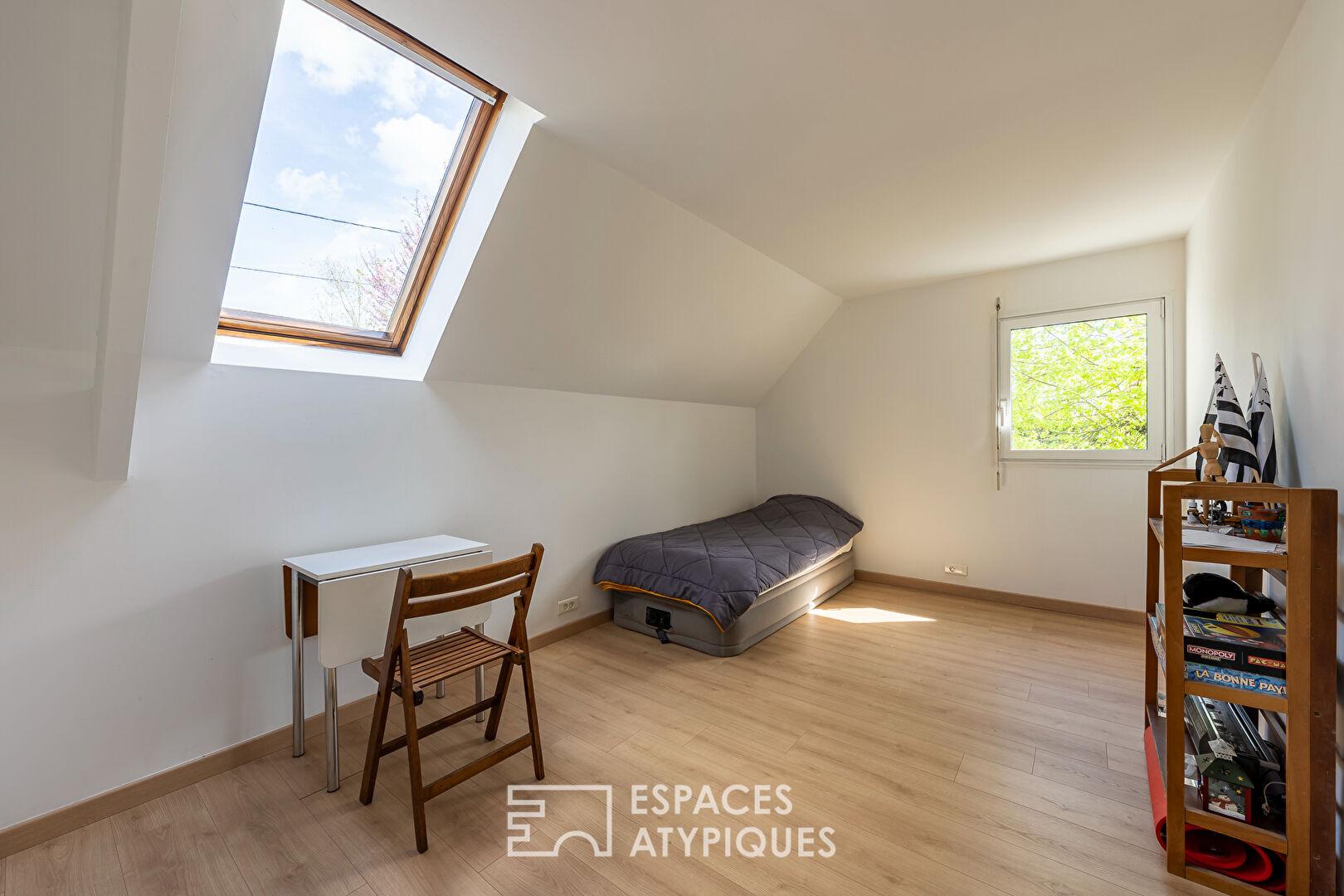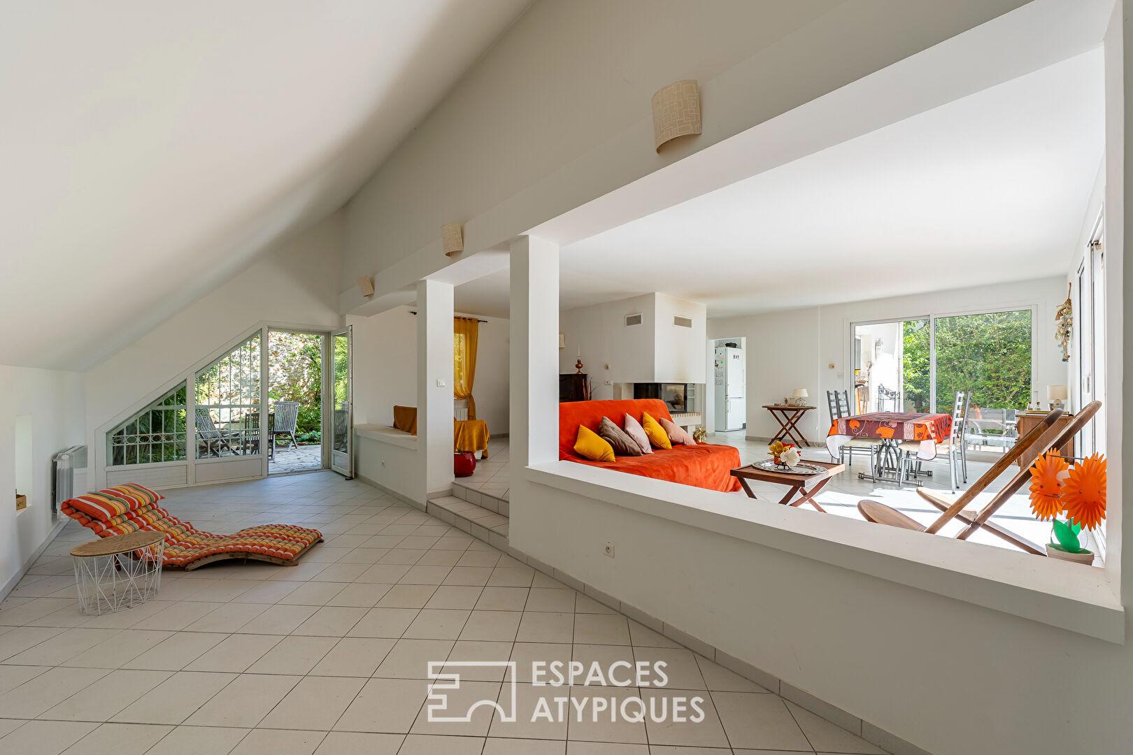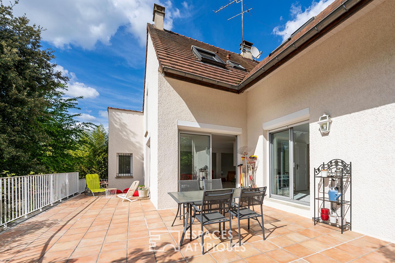 La situation à quelques minutes du centre-ville dynamique de Yerres, la luminosité constante et le jeu de niveaux du séjour ainsi que les diverses possibilités d’aménagement du niveau en ré-de jardin font de cette demeure un équilibre parfait entre vie citadine et sérénité