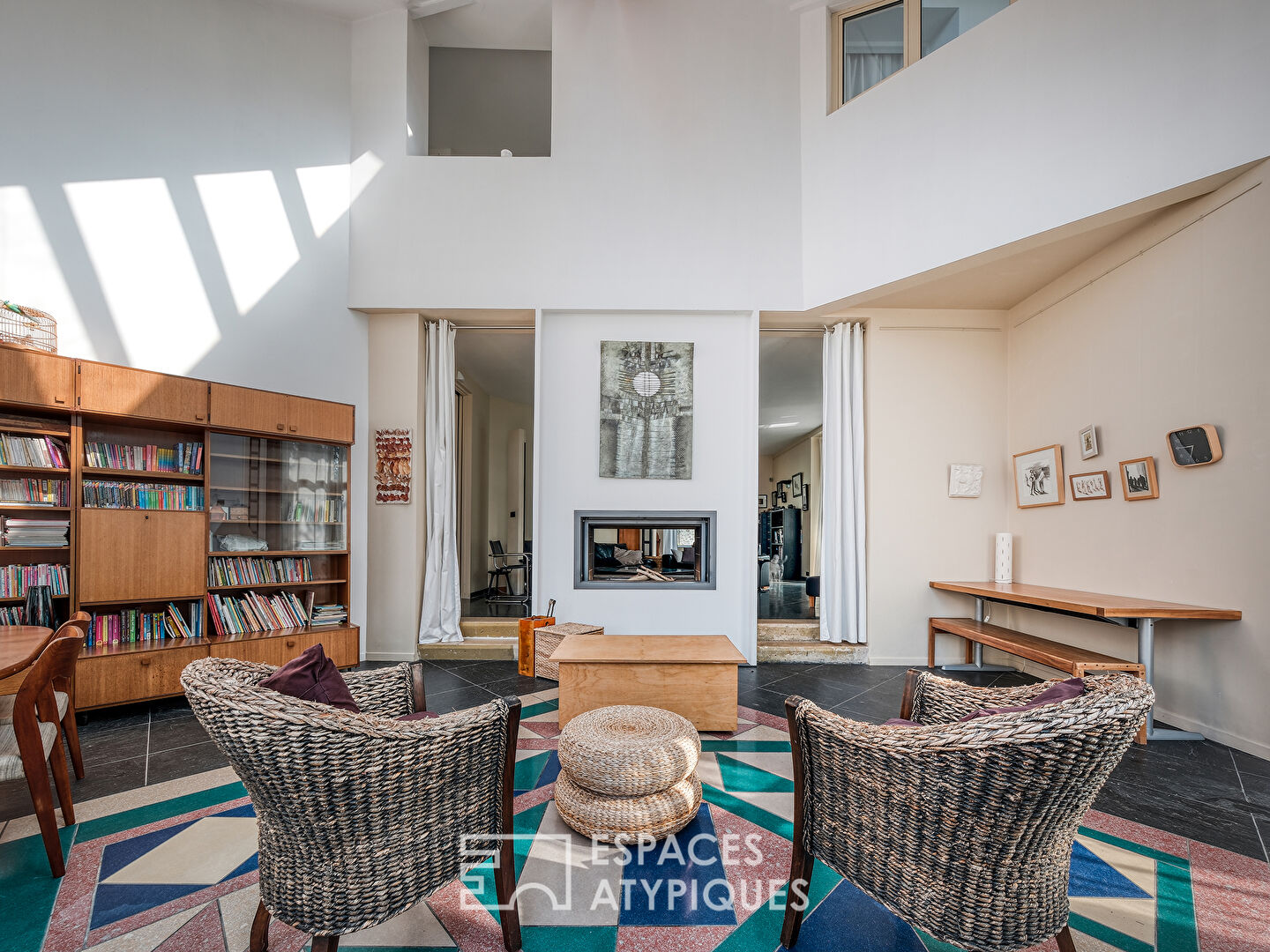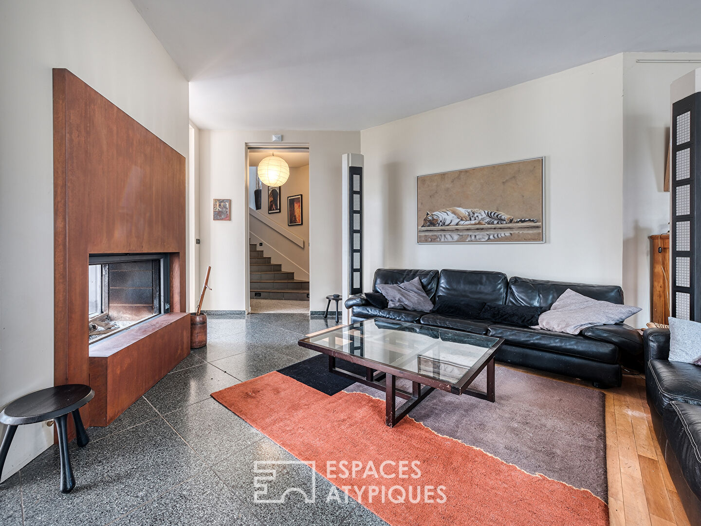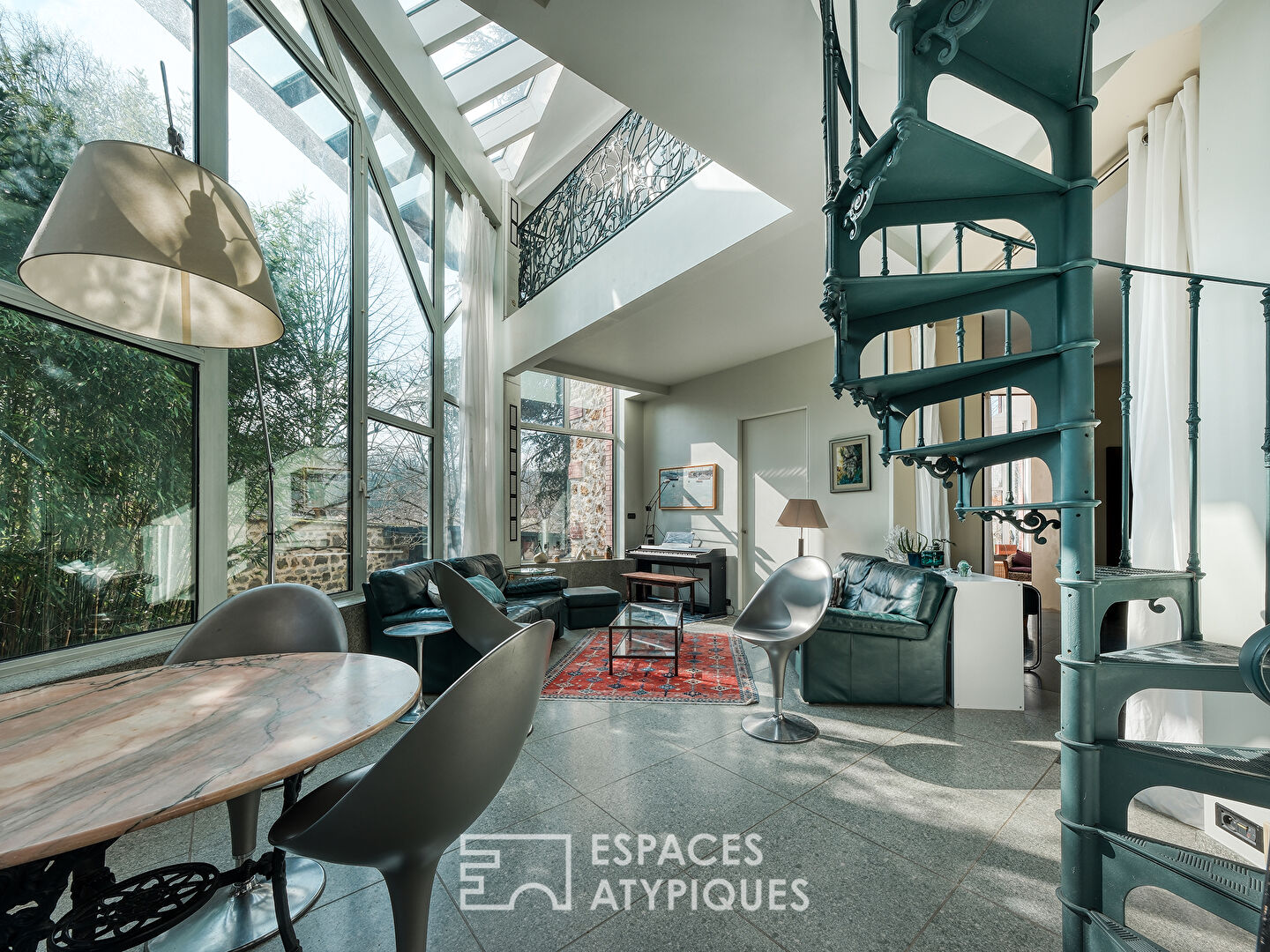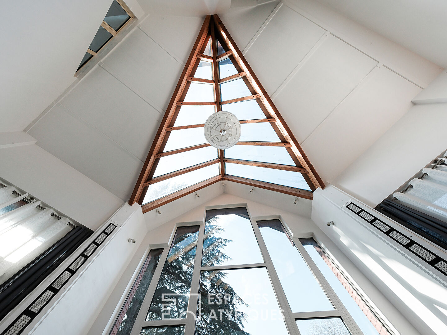 Un grand salon-réception cathédrale de 39m2 côté Ouest, avec une belle hauteur de plafond, de près de 7m et conçu dans l’esprit d’un jardin d’hiver, bénéficie de baies vitrées majestueuses et d’un panorama au soleil couchant sur un écrin de verdure. Un salon de détente côté Sud avec une verrière complète ce niveau et constituent les deux grands espaces de vie de cette maison associant grandes hauteurs de plafond, luminosité, confort et convivialité.