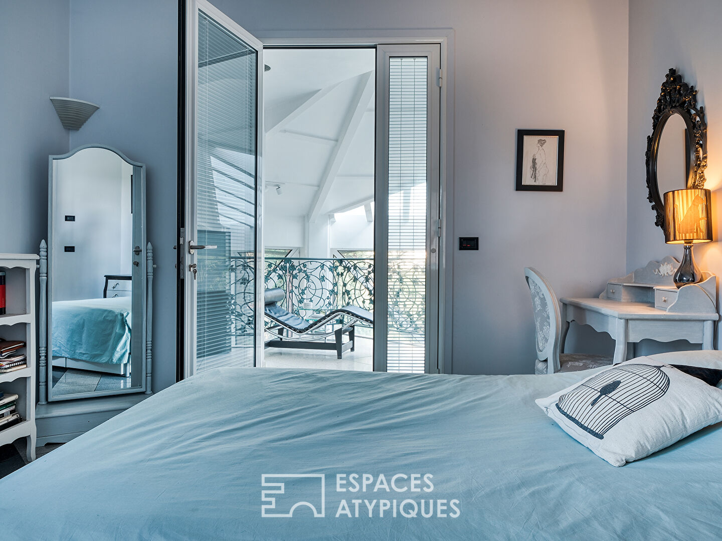 Pour l’extérieur, une terrasse orientée Est-Sud-Est est accessible depuis la salle à manger. Côté Ouest, le jardin sans aucun vis-à-vis est accessible depuis le salon-réception cathédrale.