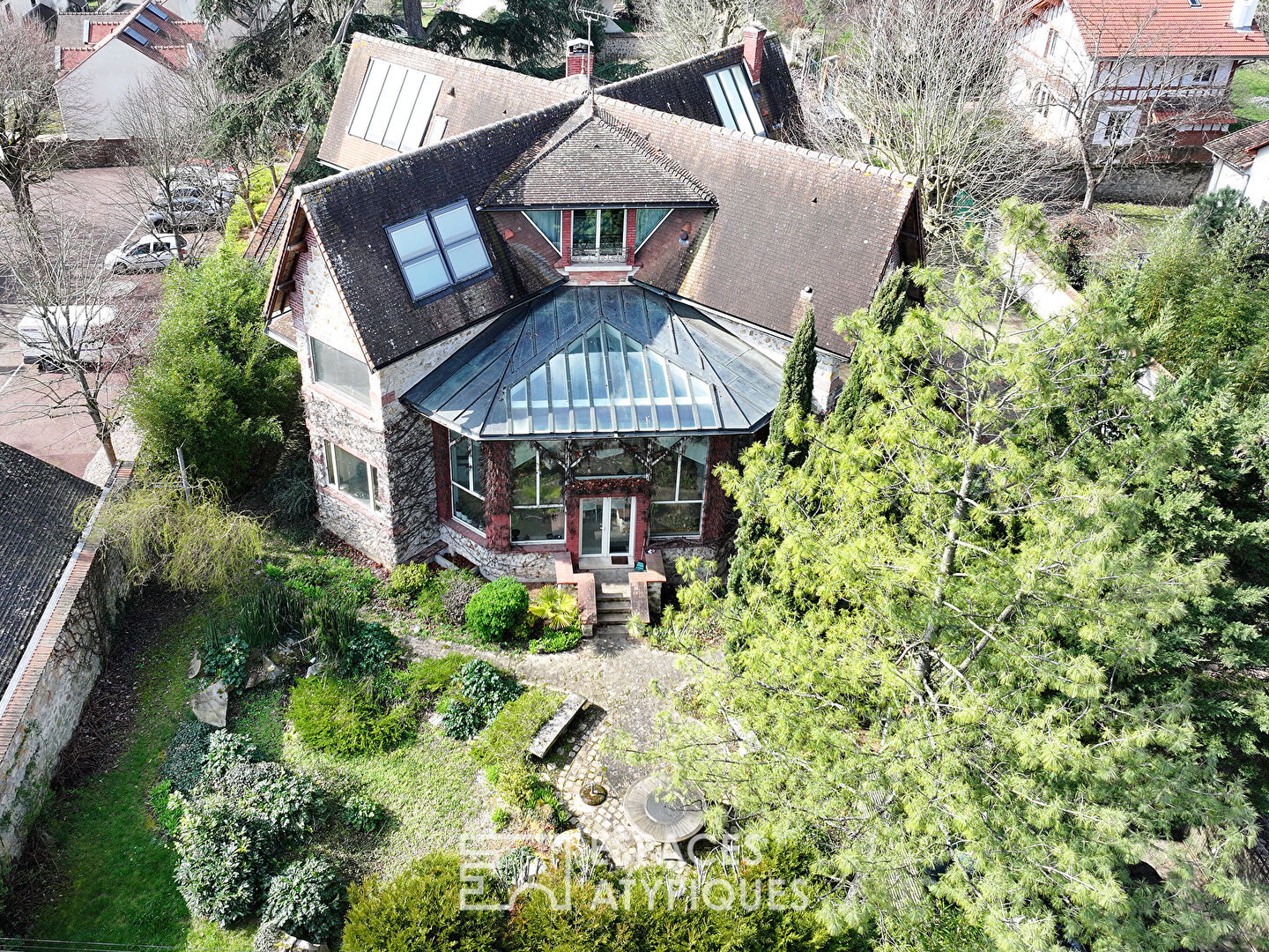 Le jardin est entièrement clos de murs. Il comprend également un grand auvent de 60 m2 avec un espace de stockage de 17 m2 au fond du jardin et des places de stationnement sur l’avant de la propriété. Avec son architecture unique et son emplacement recherché, cette maison offre une qualité de vie idéale pour une famille en quête d’espace et de proximité, proche de Paris.
