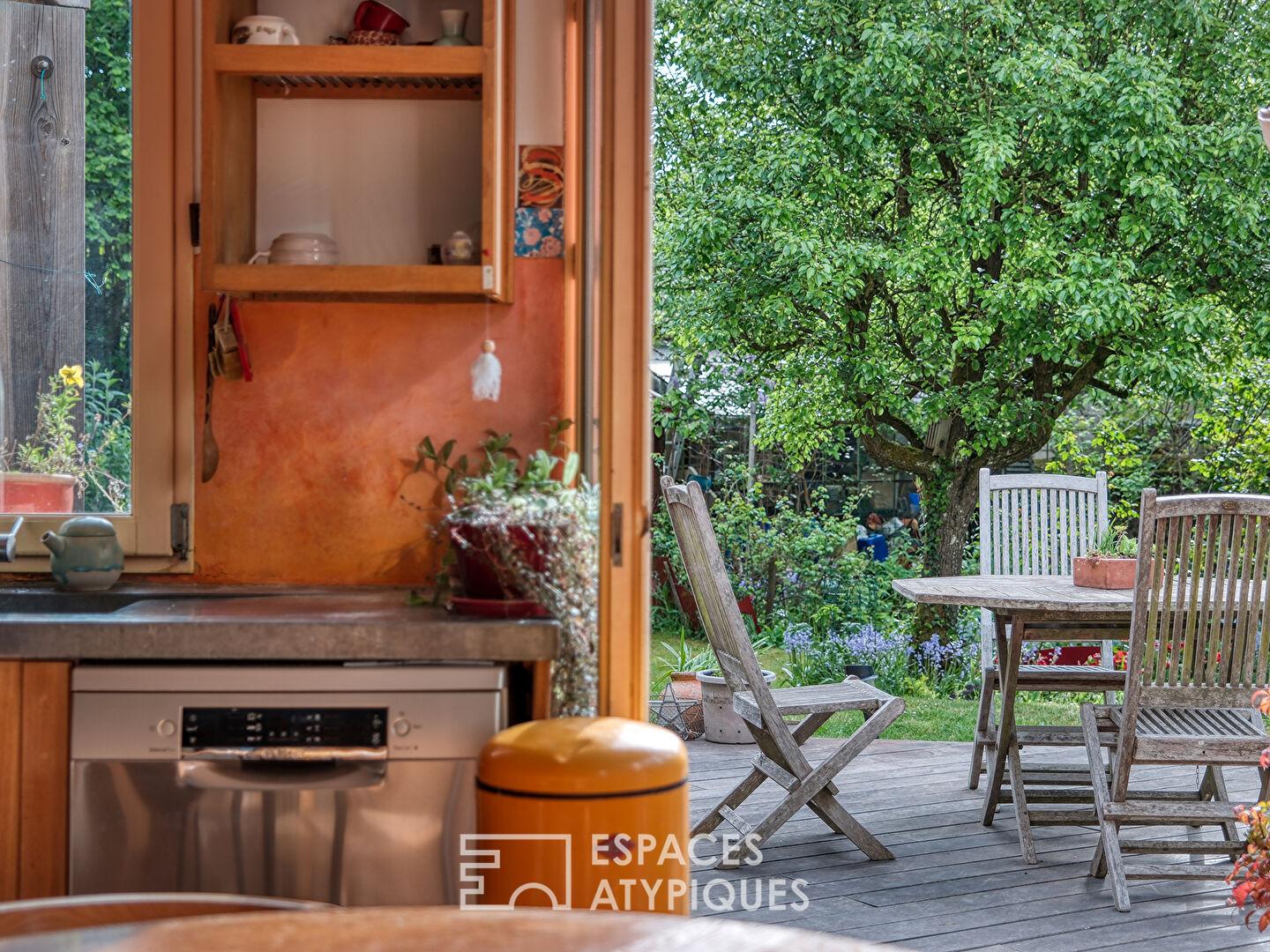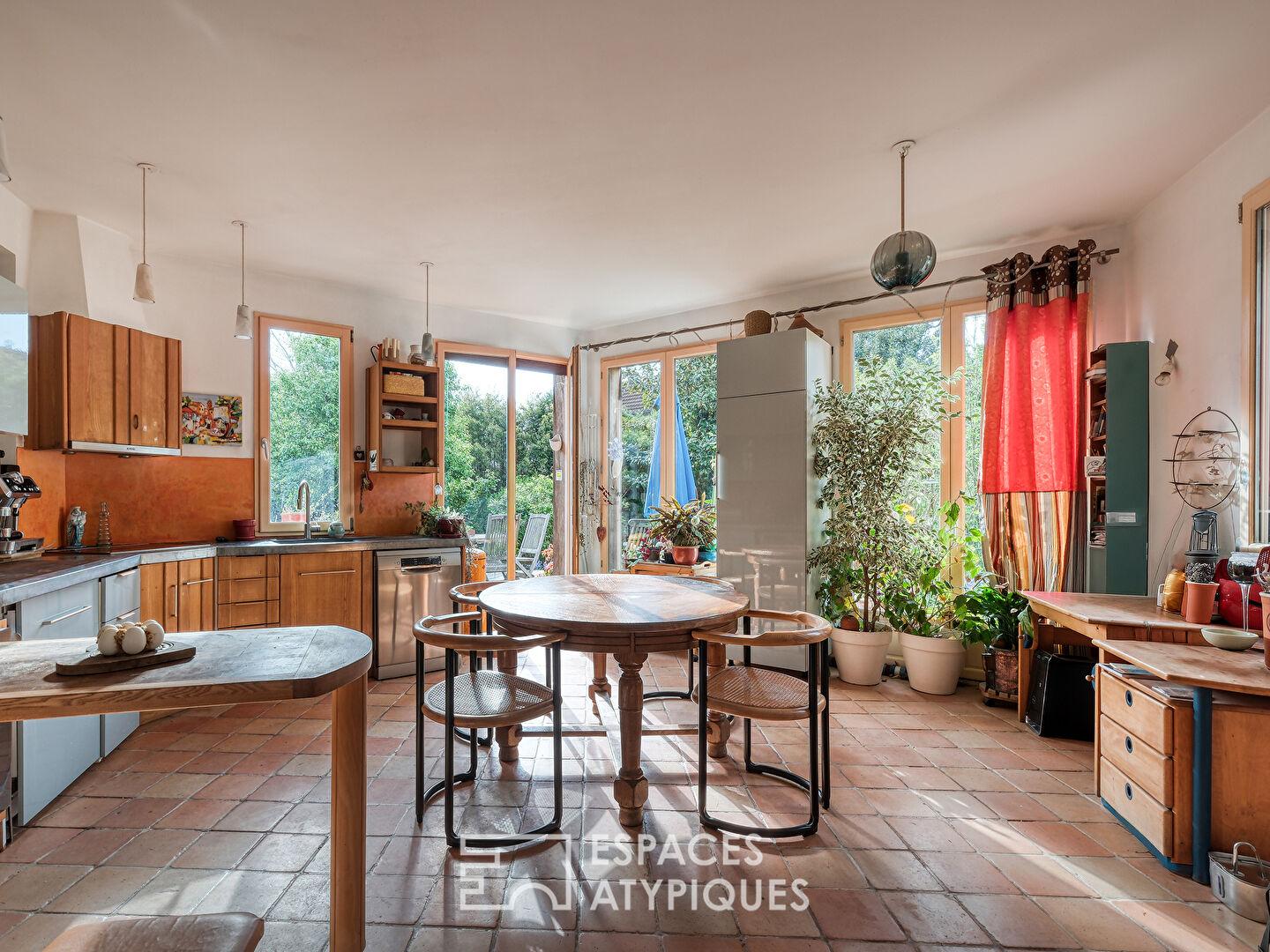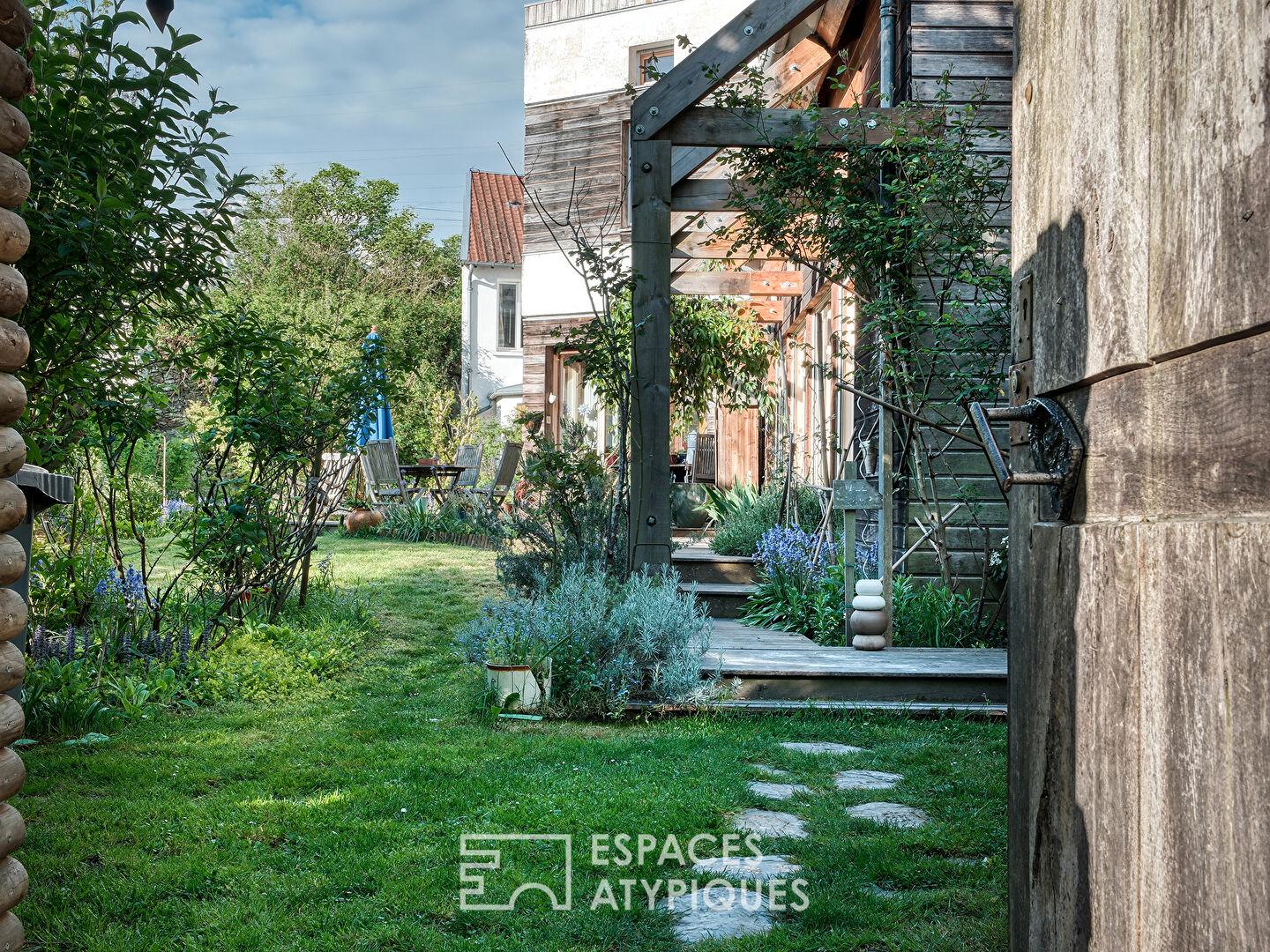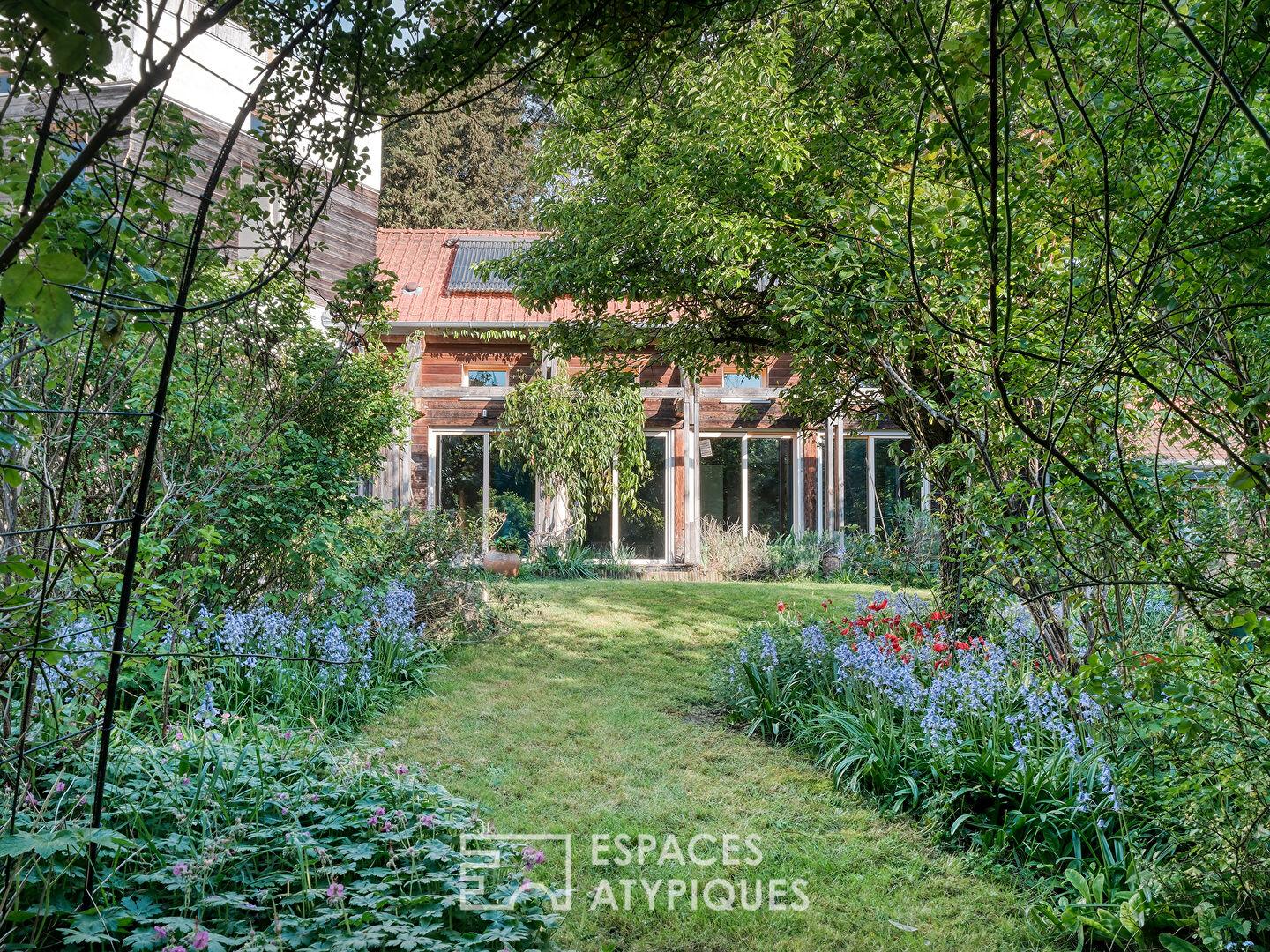 À l’extérieur, le jardin clos et sans vis-à-vis forme un écrin de verdure intime, soigneusement paysagé pour offrir des floraisons successives. Un atelier d’artiste complète l’ensemble pouvant convenir aussi pour une profession libérale avec son accès indépendant.
