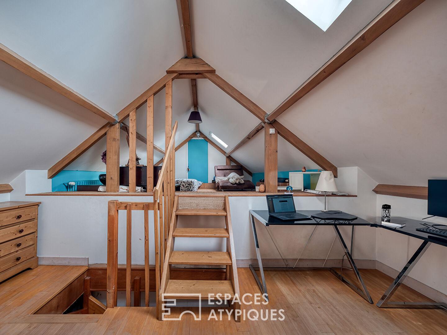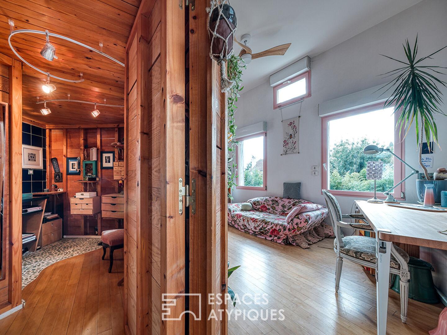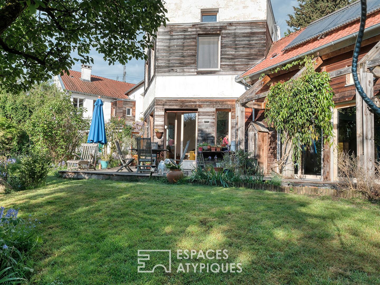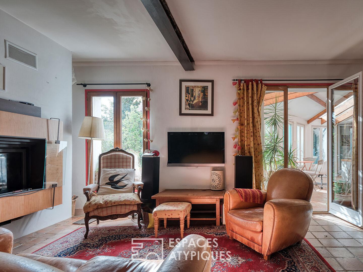 À l’extérieur, le jardin clos et sans vis-à-vis forme un écrin de verdure intime, soigneusement paysagé pour offrir des floraisons successives. Un atelier d’artiste complète l’ensemble pouvant convenir aussi pour une profession libérale avec son accès indépendant.